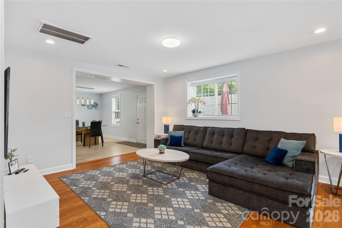 Move-in ready and ideally located just minutes from Uptown Charlotte and Lower South End, this inviting single-story home offers the perfect blend of convenience, comfort, and low-maintenance living. Featuring 4 bedrooms and 2 full baths, this all-electric home boasts a thoughtfully designed, carpet-free interior—ideal for easy upkeep and modern lifestyles. Natural light fills the living spaces, creating a warm and welcoming atmosphere throughout. Set on a spacious 0.24-acre lot (approx. 10,454 sq ft), the fully fenced, flat backyard provides endless possibilities for entertaining, pets, or simply enjoying the outdoors. A side deck offers the perfect spot for morning coffee or evening relaxation. The concrete driveway accommodates four or more vehicles and includes a chain-link gate for added privacy and functionality. Low-maintenance vinyl siding adds to the home’s easy-care appeal, while the included refrigerator, washer, and dryer make this truly a turnkey opportunity.