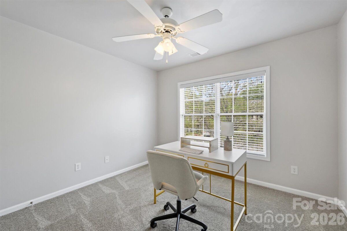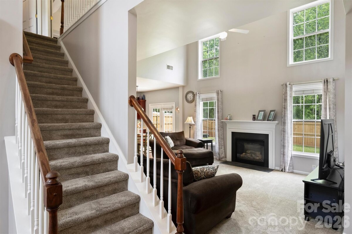 Spacious 4-bedroom, 2.5-bath home tucked away on a quiet cul-de-sac! The main level features an inviting open-concept family room and kitchen with a fireplace and gas logs, creating the perfect space for everyday living and entertaining. You’ll also find a formal dining room and a flexible formal living room that can serve as a second home office or playroom area. A dedicated main-floor office provides an ideal work-from-home setup. Upstairs, you’ll find four generous bedrooms, including a spacious primary suite, along with a convenient second-floor laundry room. Enjoy outdoor living in the fenced backyard with a wooded view offering a peaceful backdrop. Additional highlights include a two-car garage and desirable cul-de-sac location, providing both convenience and extra privacy. Enjoy the Old Stone Crossing amenities, including pools, a clubhouse, picnic area, tennis courts, pickleball courts, a fitness center, and a playground. Conveniently located just minutes from UNCC, Uptown, I-485 and I-85, shopping, dining, and schools.
