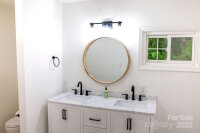 Beautifully updated brick home with 2,057 sq ft plus an enclosed, heated and air-conditioned sun room with hot tub and laundry/utility area. Upgrades include new roof, drywall, flooring, fixtures, kitchen, bathrooms, water heater, oven, and dishwasher. The open-concept layout offers bright living and dining areas, and the kitchen features marble countertops and modern finishes. The spacious primary suite has a barn door closet and a large en-suite with sleek design and accents. One of the three additional bedrooms includes a connected half bath—ideal for guests. High-end windows throughout provide abundant natural light. Outside, enjoy a private backyard framed by mature trees, creating a peaceful setting with room to customize. Located in a quiet, established neighborhood, this move-in-ready home offers a perfect blend of style, comfort, and convenience.