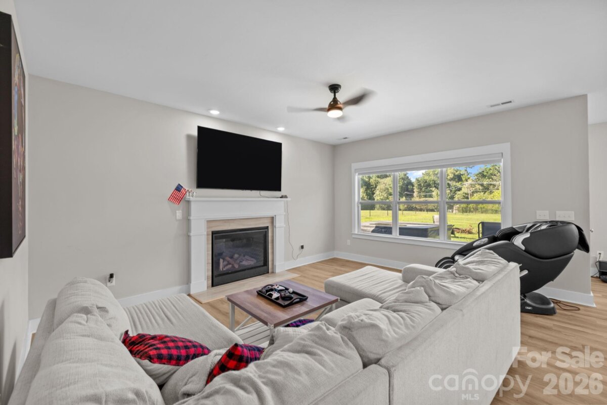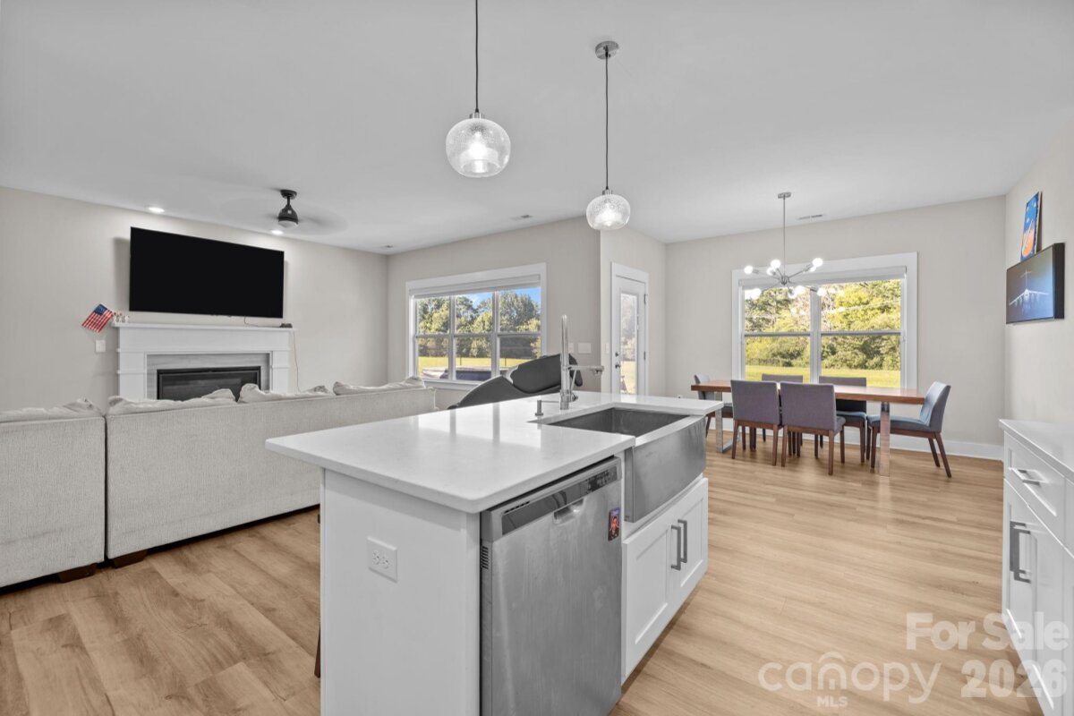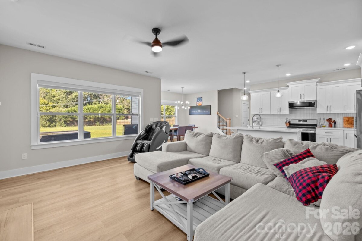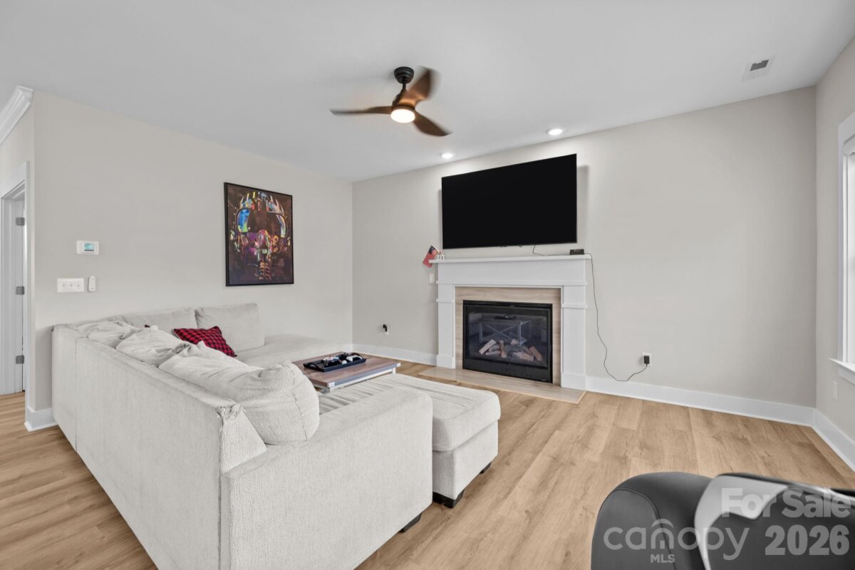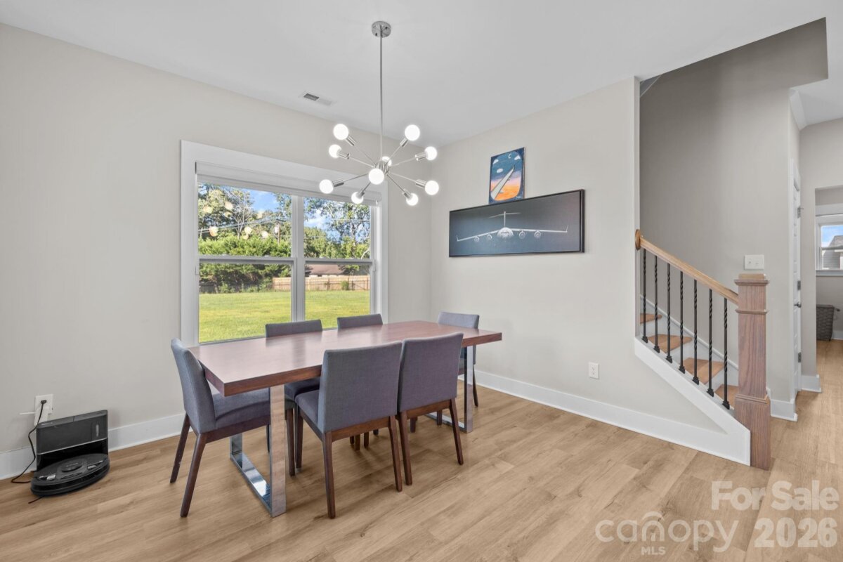 This beautifully maintained, newer home offers the perfect blend of modern design and everyday comfort — all set on a large, level, fully fenced backyard ideal for entertaining, play, or pets. The sun-filled main level features an open-concept layout designed for easy living. The stylish kitchen showcases crisp white cabinetry, elegant quartz countertops, and seamless flow into the spacious dining area and inviting living room anchored by a cozy gas fireplace. A versatile front bonus room provides endless possibilities — music room, library, guest space, or additional bedroom. Function meets convenience with a thoughtfully designed drop zone just inside the two-car garage entry, a private rear office perfect for working from home, a generous laundry room with extra storage, and a well-placed half bath. Upstairs, the primary suite offers a relaxing retreat complete with a full bath and an oversized walk-in closet. Two additional well-proportioned bedrooms feature large windows and double closets, complemented by a second full bath and a charming sitting area ideal for reading or homework space. Durable vinyl plank flooring runs throughout the home, and pull-down attic access provides added convenience. Existing window blinds, washer, dryer, and refrigerator all convey — making this home truly move-in ready. Best of all, there are no HOA fees. Perfectly located just minutes from Gaston Country Club, as well as shopping, dining, and everyday conveniences, this exceptional property offers both comfort and accessibility. Welcome home!