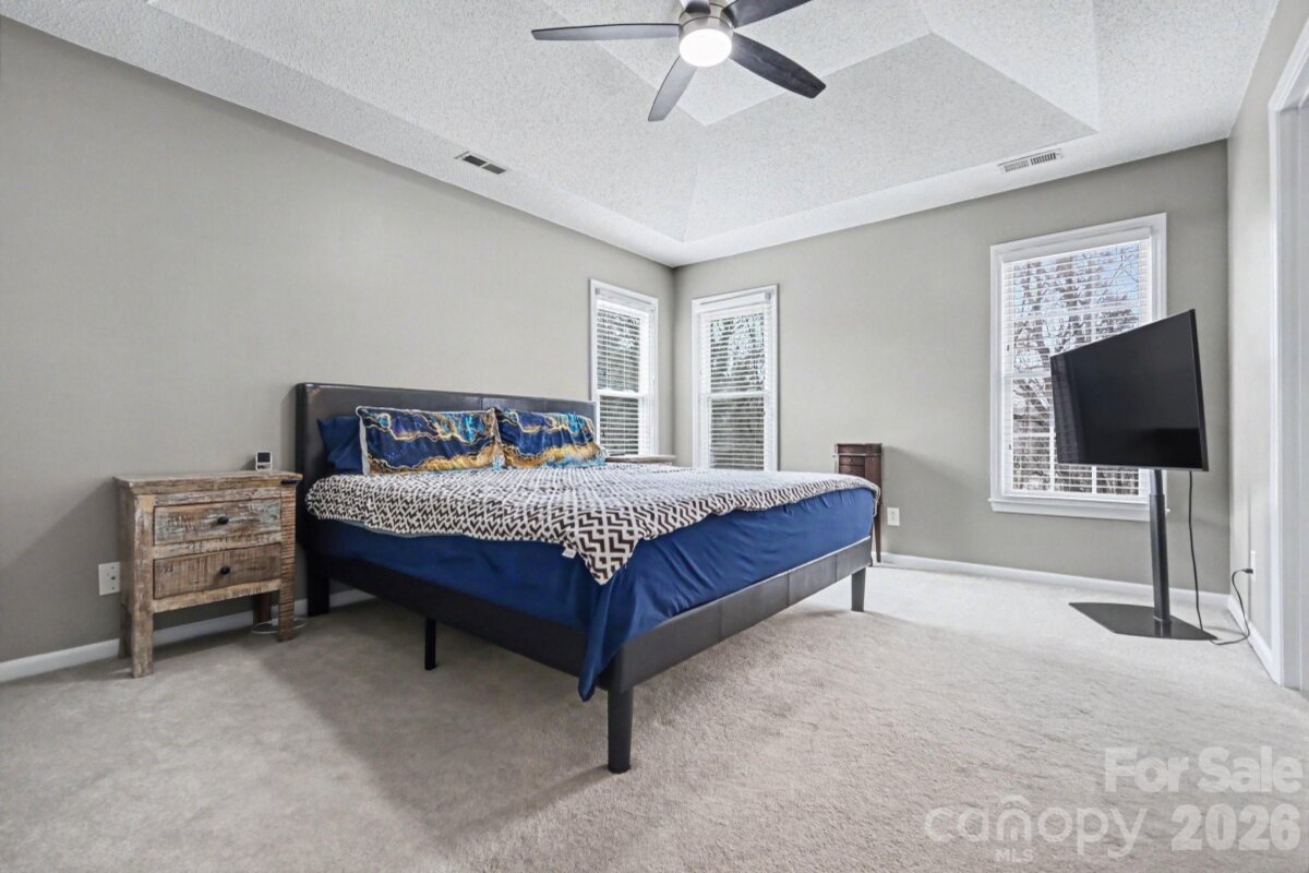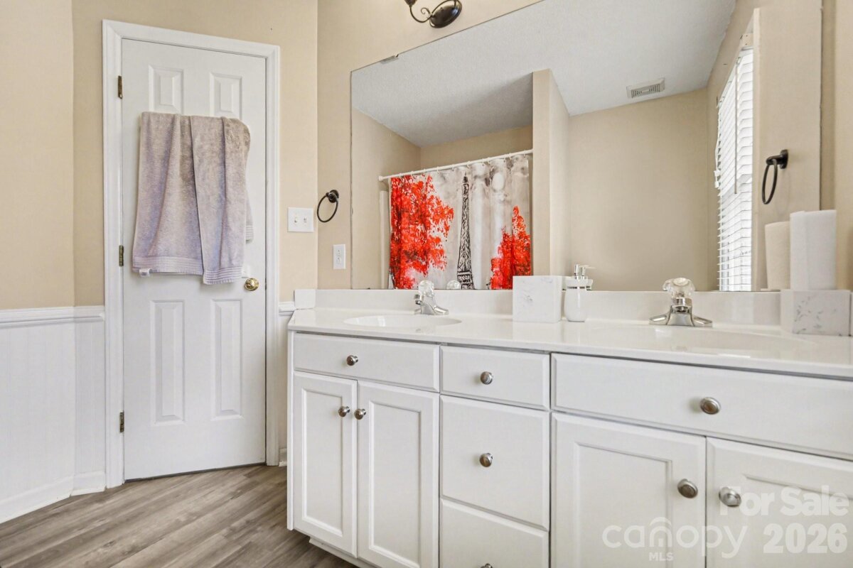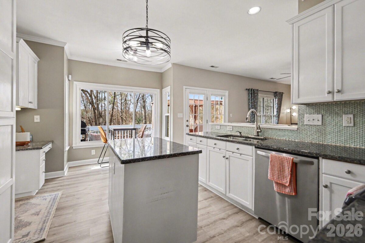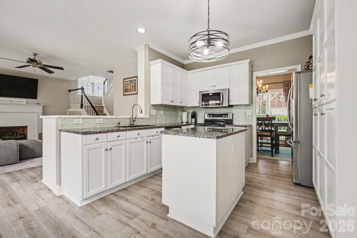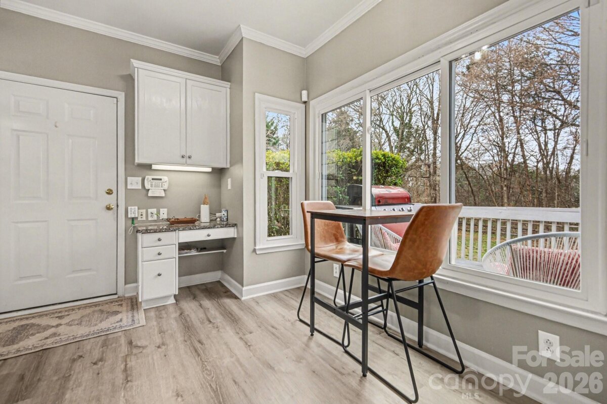 Welcome to this well-appointed home offering comfortable living and updated finishes throughout. The main level features a formal dining room, an inviting breakfast nook, and a spacious great room perfect for gathering and everyday living. A versatile flex space provides the ideal area for a home office, playroom, or additional sitting room to suit your needs. Upstairs, the generous primary suite offers a private retreat with an ensuite bath featuring a double vanity with Corian countertops. Step outside to enjoy the fenced-in backyard complete with a large deck—perfect for grilling and entertaining—as well as an additional patio area that’s ideal for relaxing around a fire pit. Convenient to I-485, shopping, and everything the university area offers.