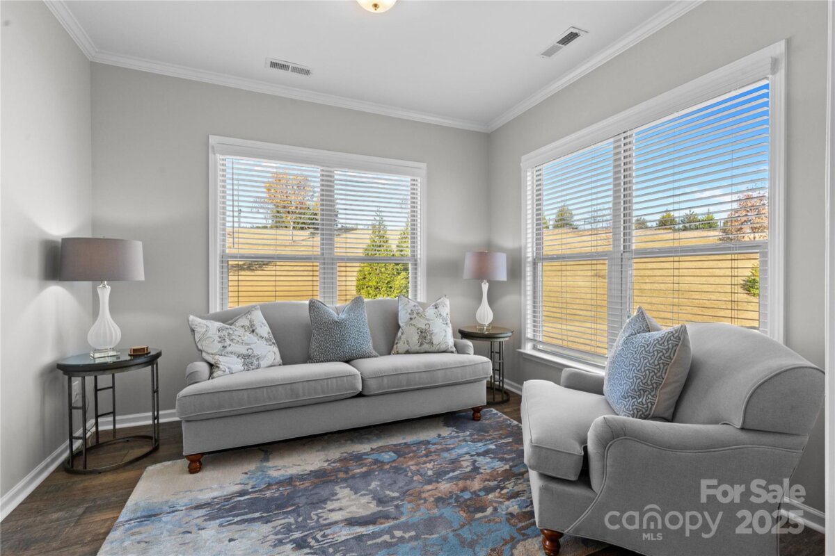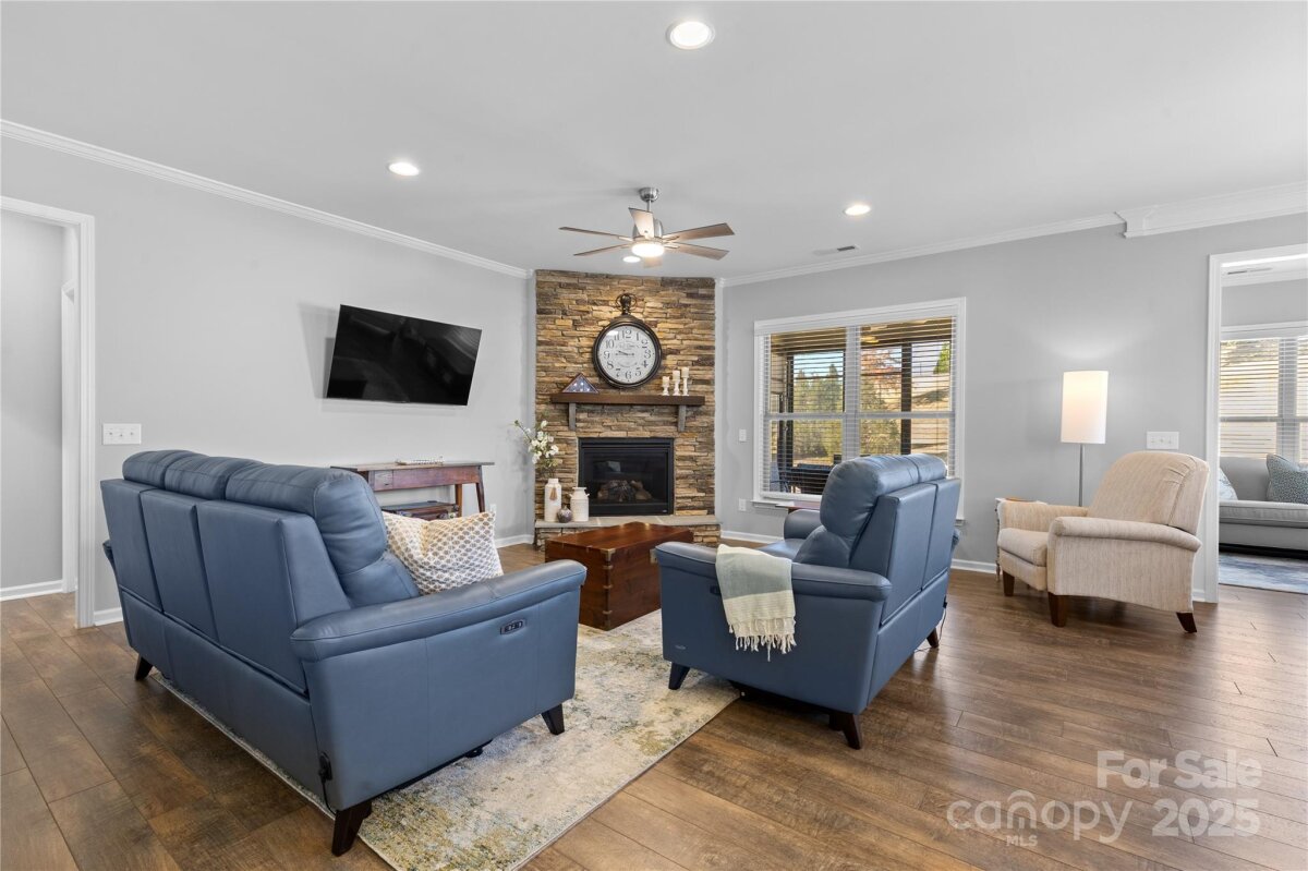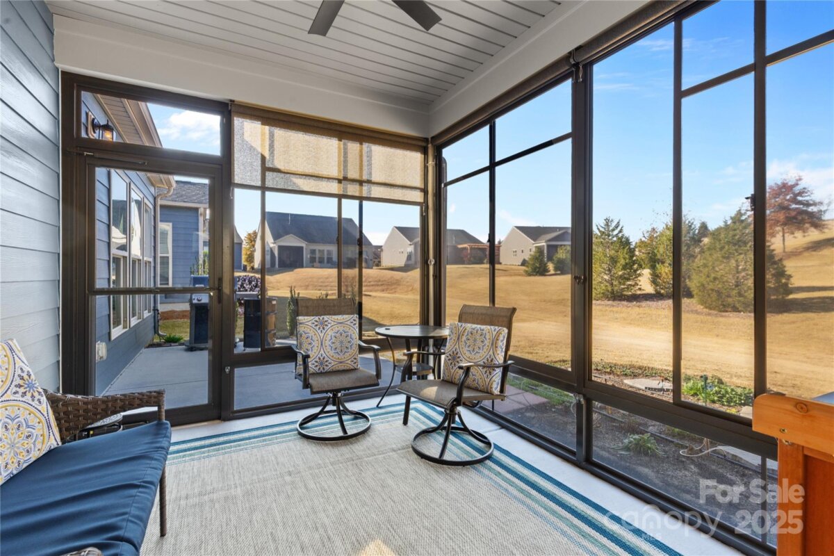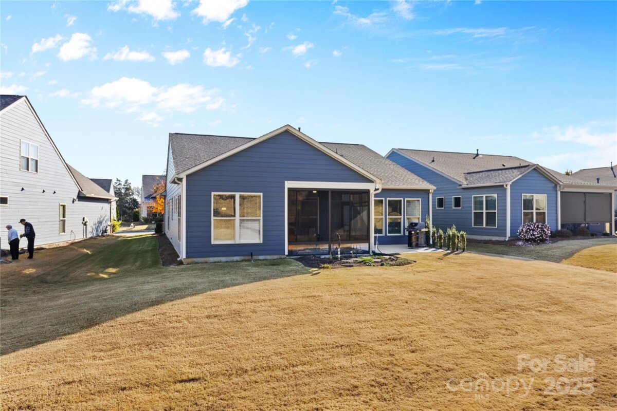 Easy living awaits in this beautifully maintained 1-level home in the highly desired 55+ community of Carolina Orchards. This 2-bedroom (plus office!) floorplan offers comfortable, modern living with vinyl plank flooring throughout the main areas and a stunning stone-surround fireplace with a raised hearth. The chef’s kitchen impresses with a large island, granite countertops, white cabinetry, under-cabinet lighting, stainless appliances, and gas cooking. Enjoy everyday relaxation in the bright sunroom or on the screened porch featuring Eze-Breeze windows for nearly year-round use. Step outside to a charming patio overlooking the level backyard. Thoughtful storage is found throughout the home, including two pantries and a spacious primary closet, all upgraded with built-in shelving. This one is truly move-in ready!