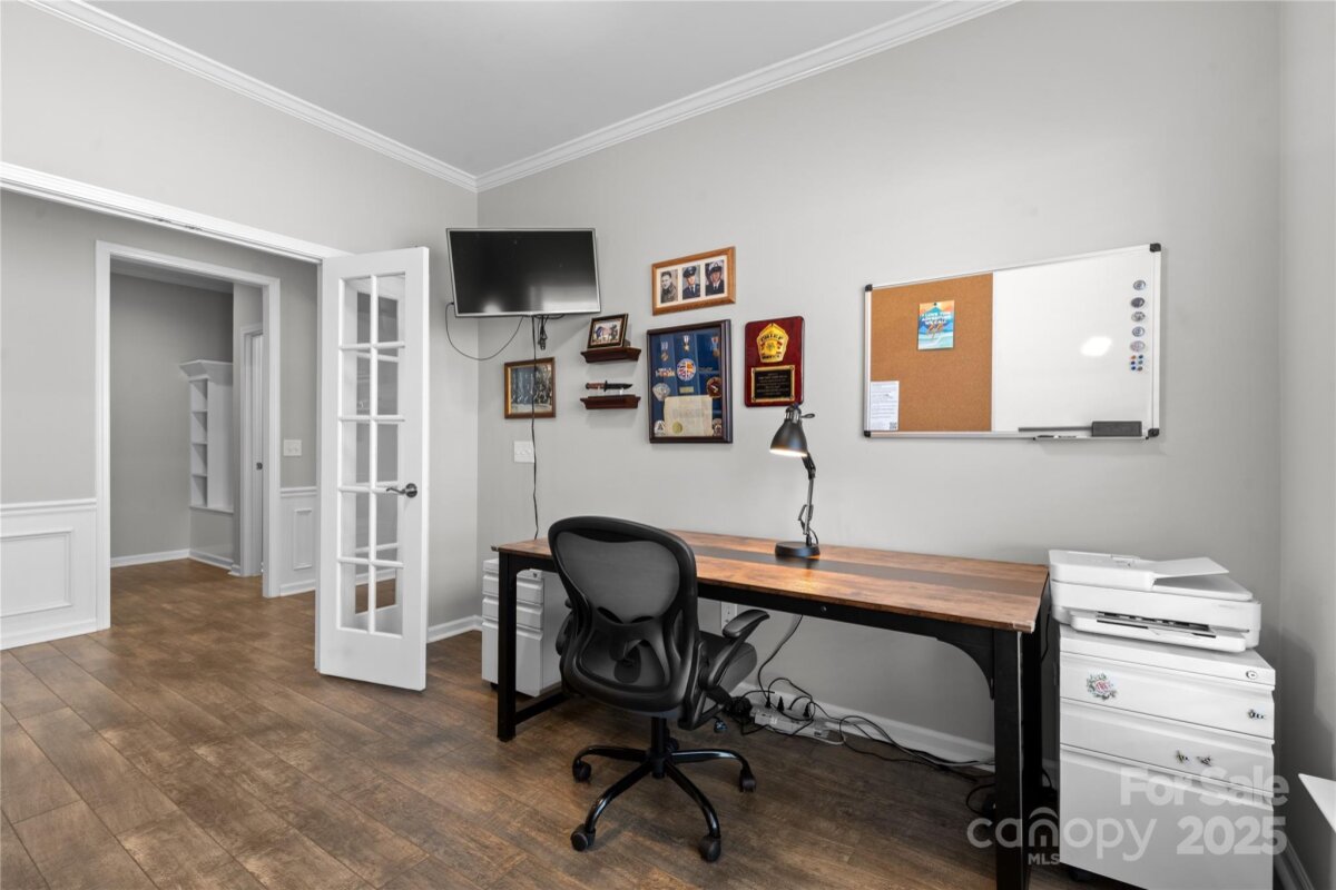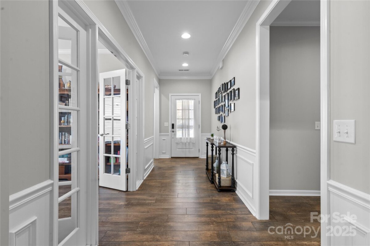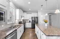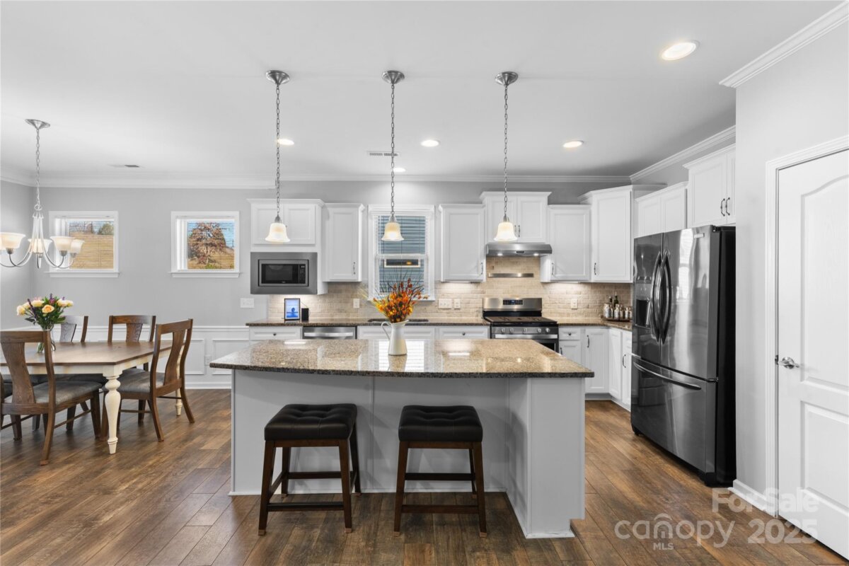 Easy living awaits in this beautifully maintained 1-level home in the highly desired 55+ community of Carolina Orchards. This 2-bedroom (plus office!) floorplan offers comfortable, modern living with vinyl plank flooring throughout the main areas and a stunning stone-surround fireplace with a raised hearth. The chef’s kitchen impresses with a large island, granite countertops, white cabinetry, under-cabinet lighting, stainless appliances, and gas cooking. Enjoy everyday relaxation in the bright sunroom or on the screened porch featuring Eze-Breeze windows for nearly year-round use. Step outside to a charming patio overlooking the level backyard. Thoughtful storage is found throughout the home, including two pantries and a spacious primary closet, all upgraded with built-in shelving. This one is truly move-in ready!
