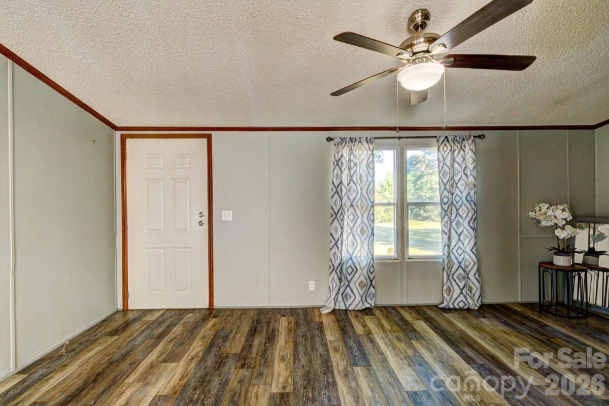 This 4-bedroom home is situated on 1.24 acres in rural Cleveland County. The long driveway and spacious yard provide additional privacy. Inside, you'll find a living room, a den, a kitchen, and a dining room. The layout features a split-bedroom design, with the primary bedroom separated from the other bedrooms. Additionally, the Goodman heat pump was manufactured in May 2022.