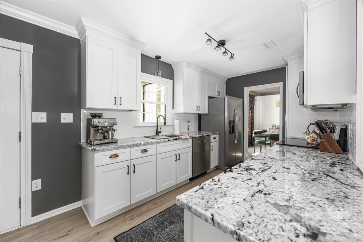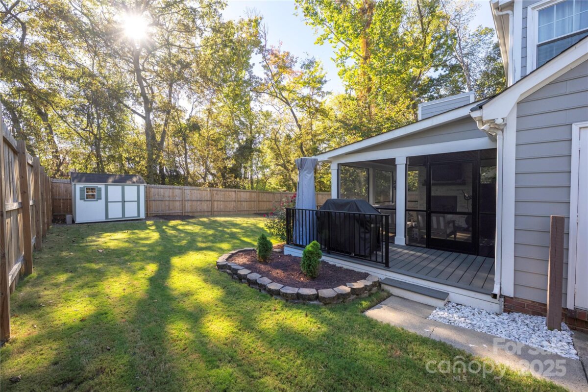 This move-in-ready gem has been meticulously enhanced with exterior and interior upgrades, including a charming screened-in porch perfect for year-round enjoyment, elegantly renovated bathrooms featuring floor to ceiling tile and new plumbing, a new fence for added privacy, a spacious outdoor shed for storage, a new staircase and interior details like wall woodwork throughout. Recently the home received a new roof, energy-efficient appliances, a high-performance HVAC system, stunning new flooring, and new windows, ensuring comfort and efficiency. With its warm, inviting floor plan and extensive updates, this home blends classic charm with contemporary flair. Nestled in the desirable Brandon Forest neighborhood of South Charlotte, this unbeatable location is just minutes from shopping, dining, and entertainment at SouthPark Mall and Phillips Place. With easy access to major highways like I-77 and I-485, commuting to Uptown Charlotte or surrounding areas is a breeze. Enjoy the perfect blend of suburban tranquility and urban convenience.