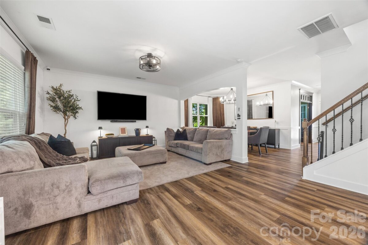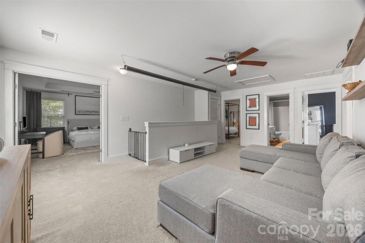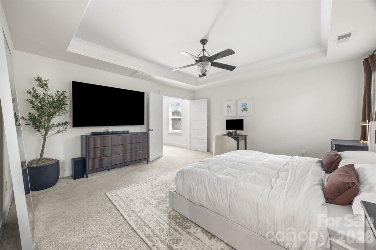 Welcome to this charming home with an open and inviting floor plan that’s perfect for everyday living and entertaining. The main living areas feature durable laminate flooring, a neutral color palette, and beautiful board-and-batten accents that add just the right touch of character. Just off the entry, you’ll find a private office with French doors—ideal for working from home or a quiet retreat. The kitchen is spacious and functional, offering stainless steel appliances, a center island, and a walk-in pantry with custom shelving. Previous owners replaced the garbage disposal and microwave. The drop zone entry from the side-entry 2-car garage adds convenience and storage potential. The extended driveway provides parking for up to six cars. Upstairs, the primary suite offers a relaxing retreat with a huge walk-in closet and a beautifully designed walk-in shower. You’ll also find spacious secondary bedrooms with custom closet organizers and a versatile loft area to fit your needs. Step outside to enjoy the deck overlooking a fenced backyard—perfect for relaxing or entertaining. The community amenities include a neighborhood pool and optional boat storage rental. Located in the highly sought-after Clover School District and just minutes from the YMCA Aquatic Center, shopping, dining, and more—this home is one you don’t want to miss! Home has been pre-appraised.