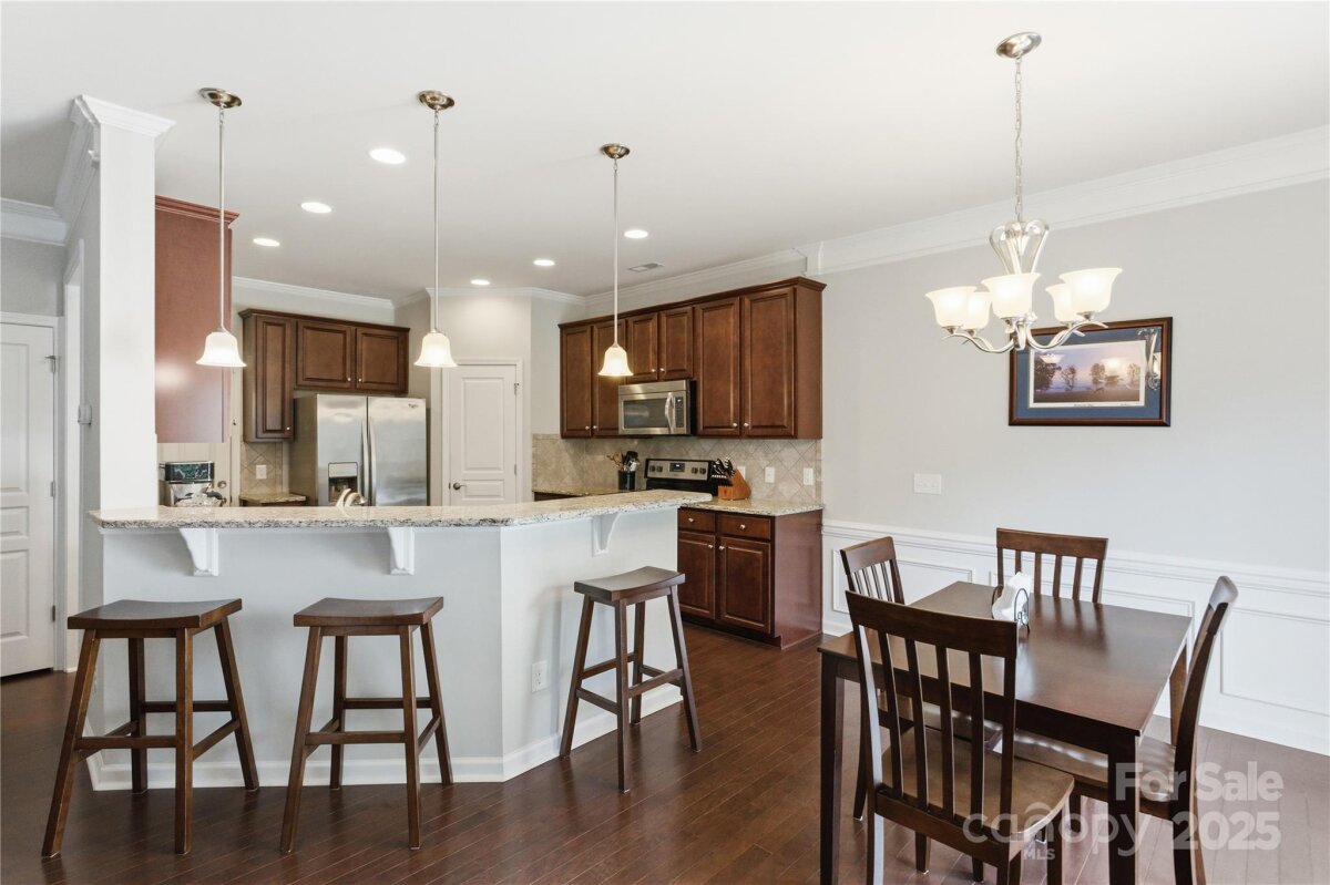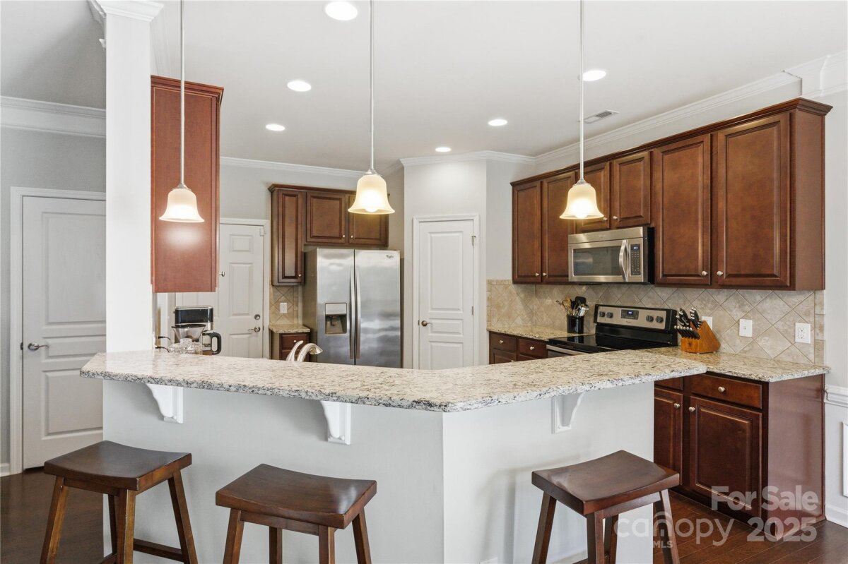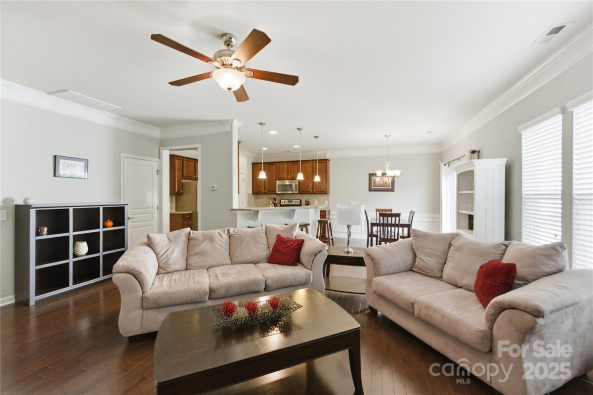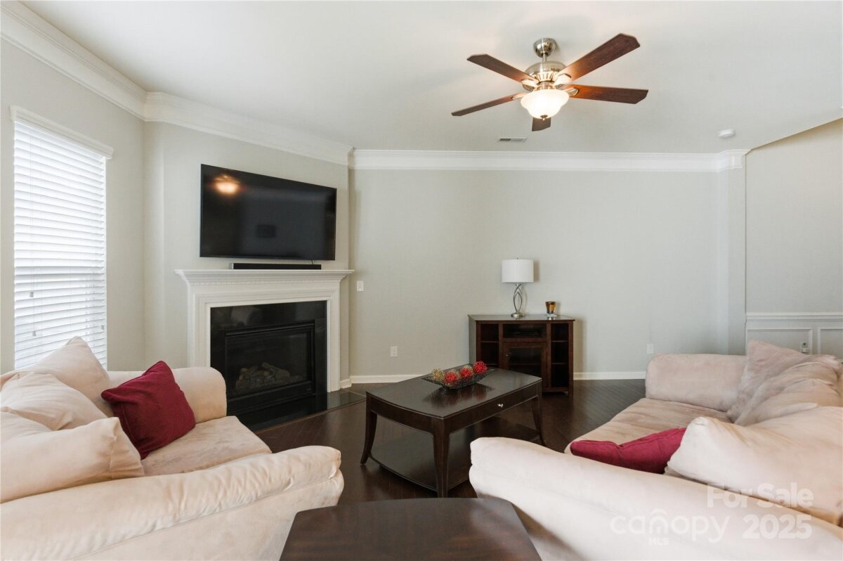 Meticulously maintained townhome in the gated community of Park South Station, where resort-style amenities abound. Residents enjoy a pool, clubhouse, fitness center, dog park, and playground—all just minutes from SouthPark, Uptown, and major highways. This 3-bedroom, 2.5-bath home blends comfort and style throughout, offering thoughtfully designed spaces ideal for everyday living.The main level features a well-appointed kitchen, a spacious living room with a fireplace, and a dining area. Beautiful wood floors and crown molding add warmth and character to the main floor. Upstairs, the owner’s retreat with a stylish tray ceiling offers a large walk-in closet, walk-in shower, and dual vanities. Two spacious guest bedrooms, a loft with a built-in desk, full bathroom with a dual vanity, and a laundry room with cabinets complete the upper level. Additional highlights include a two-car garage, a private rear patio, and access to Little Sugar Creek Greenway. Offering a welcoming interior, convenient location, and access to fantastic community features, this townhome is a place you’ll love to call home.
