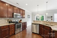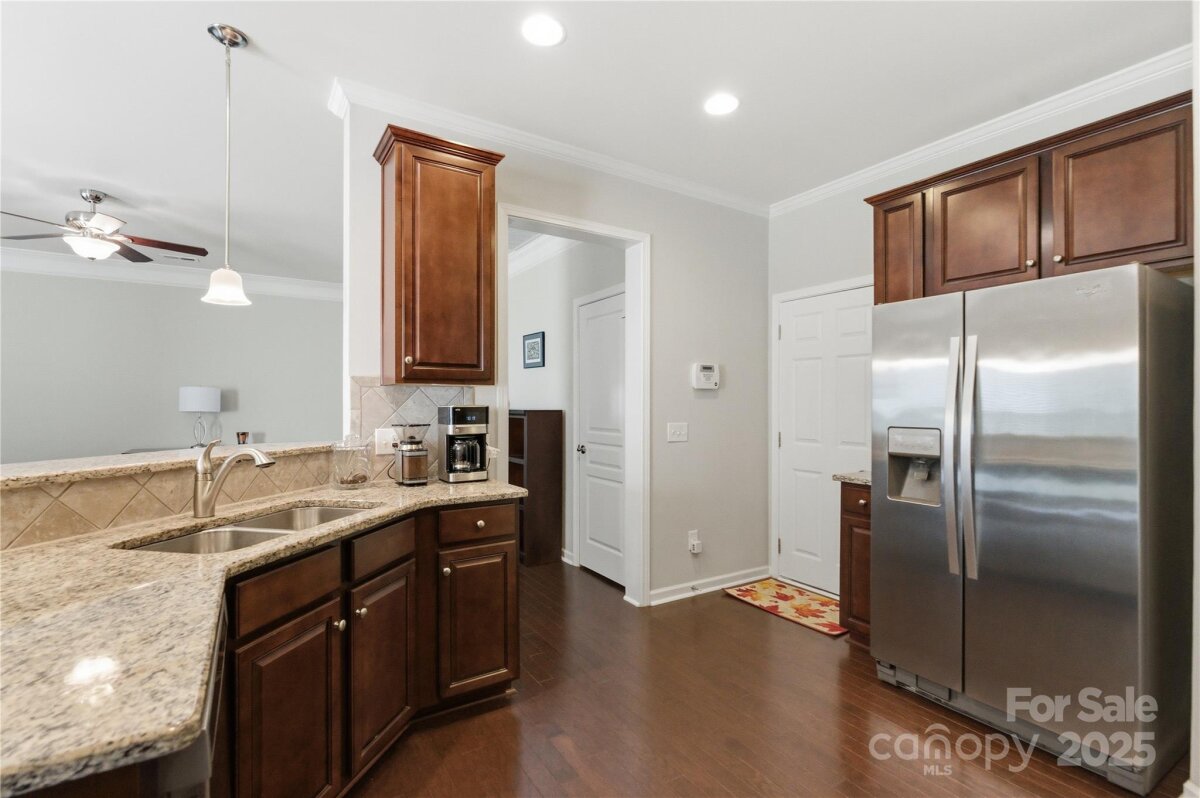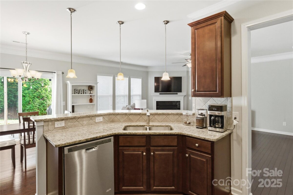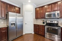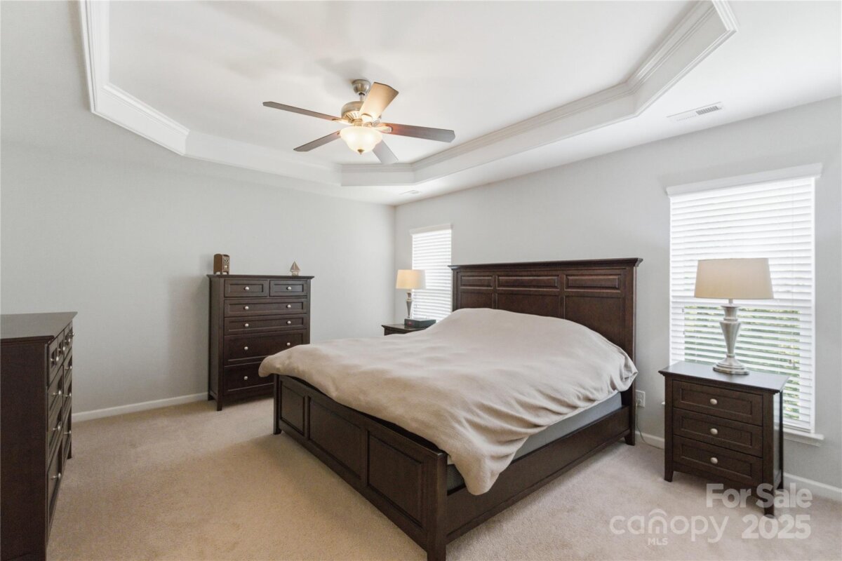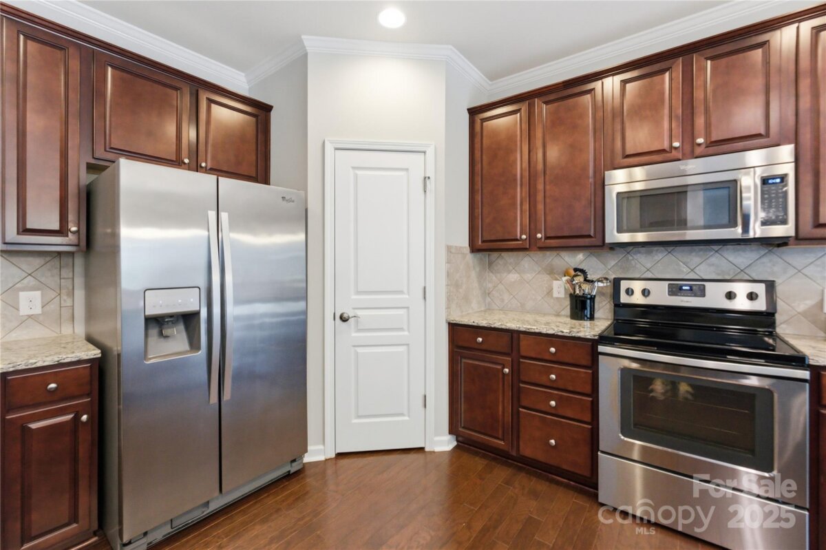 Meticulously maintained townhome in the gated community of Park South Station, where resort-style amenities abound. Residents enjoy a pool, clubhouse, fitness center, dog park, and playground—all just minutes from SouthPark, Uptown, and major highways. This 3-bedroom, 2.5-bath home blends comfort and style throughout, offering thoughtfully designed spaces ideal for everyday living.The main level features a well-appointed kitchen, a spacious living room with a fireplace, and a dining area. Beautiful wood floors and crown molding add warmth and character to the main floor. Upstairs, the owner’s retreat with a stylish tray ceiling offers a large walk-in closet, walk-in shower, and dual vanities. Two spacious guest bedrooms, a loft with a built-in desk, full bathroom with a dual vanity, and a laundry room with cabinets complete the upper level. Additional highlights include a two-car garage, a private rear patio, and access to Little Sugar Creek Greenway. Offering a welcoming interior, convenient location, and access to fantastic community features, this townhome is a place you’ll love to call home.