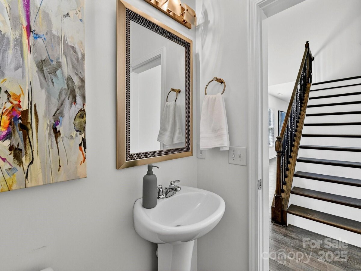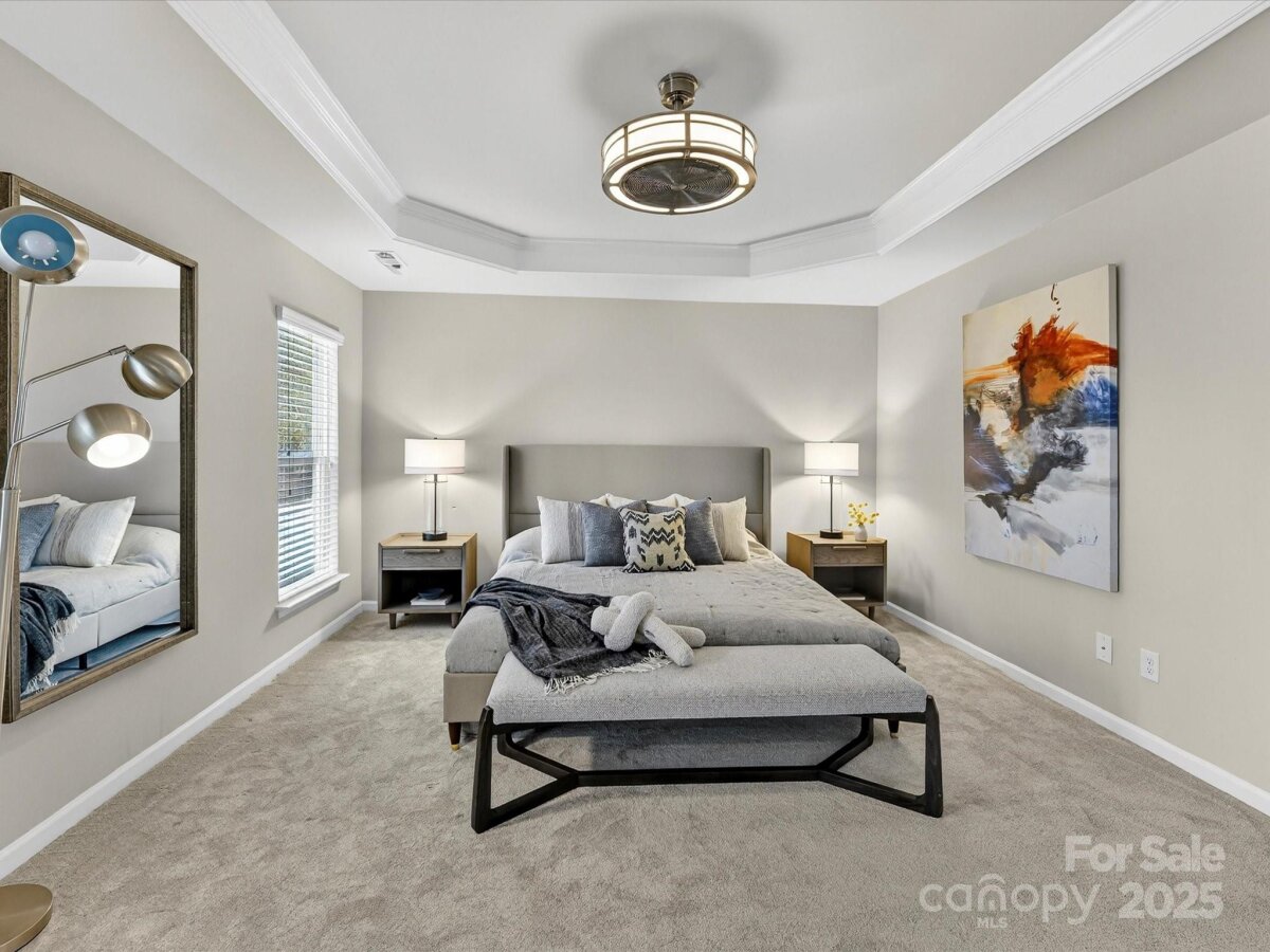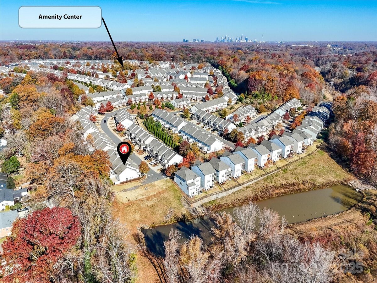 Enjoy a lifestyle with views and exceptional privacy! This coveted END-UNIT townhome overlooks Little Sugar Creek Greenway, a peaceful pond and backs to mature trees – making it one of the most scenic and private locations in gated Park South Station. East/west sun exposure delivers an abundance of bright, natural light into this modern townhome with upgrades galore. There’s even room for fur babies! A pet sanctuary underneath the stairwell boasts its own lighting and HVAC vents. Luxurious laminate flooring is both gorgeous and impressively durable. Custom lighting. Spacious great room with fireplace and inviting dining area. Gourmet kitchen offers farm style sink, pantry, breakfast bar, white kitchen cabinetry with under-counter lights and granite counters. Whirlpool stainless steel gas range, microwave, and refrigerator with water/ice dispenser. Upstairs: 9-foot ceilings. Loft is ideal for a perfectly-organized desk. Primary bedroom suite offers a tray ceiling, huge custom walk-in closet and spa-like bathroom with shower, dual vanities. a private water closet, and an extra storage closet for bed linens, towels or collectibles. Two generously-sized secondary bedrooms enjoy access to a hall bathroom with wide vanity and tub/shower. Upstairs laundry room offers beautiful washer, dryer and cabinetry. 2-car garage. 2 extra parking spaces for guests are conveniently located adjacent to the unit. Fully fenced private backyard with festive lighting and oversized patio. Resort-like amenities abound in popular Park South Station: clubhouse, fitness center, dog park, outdoor pool, playground and sidewalks. Park South Station is moments away from SouthPark Mall, the airport, major highways and uptown.