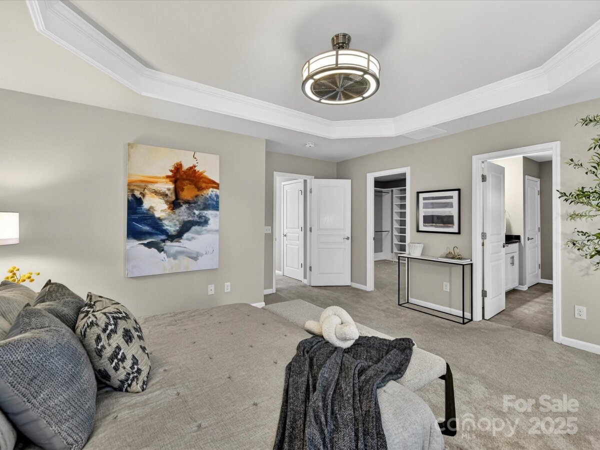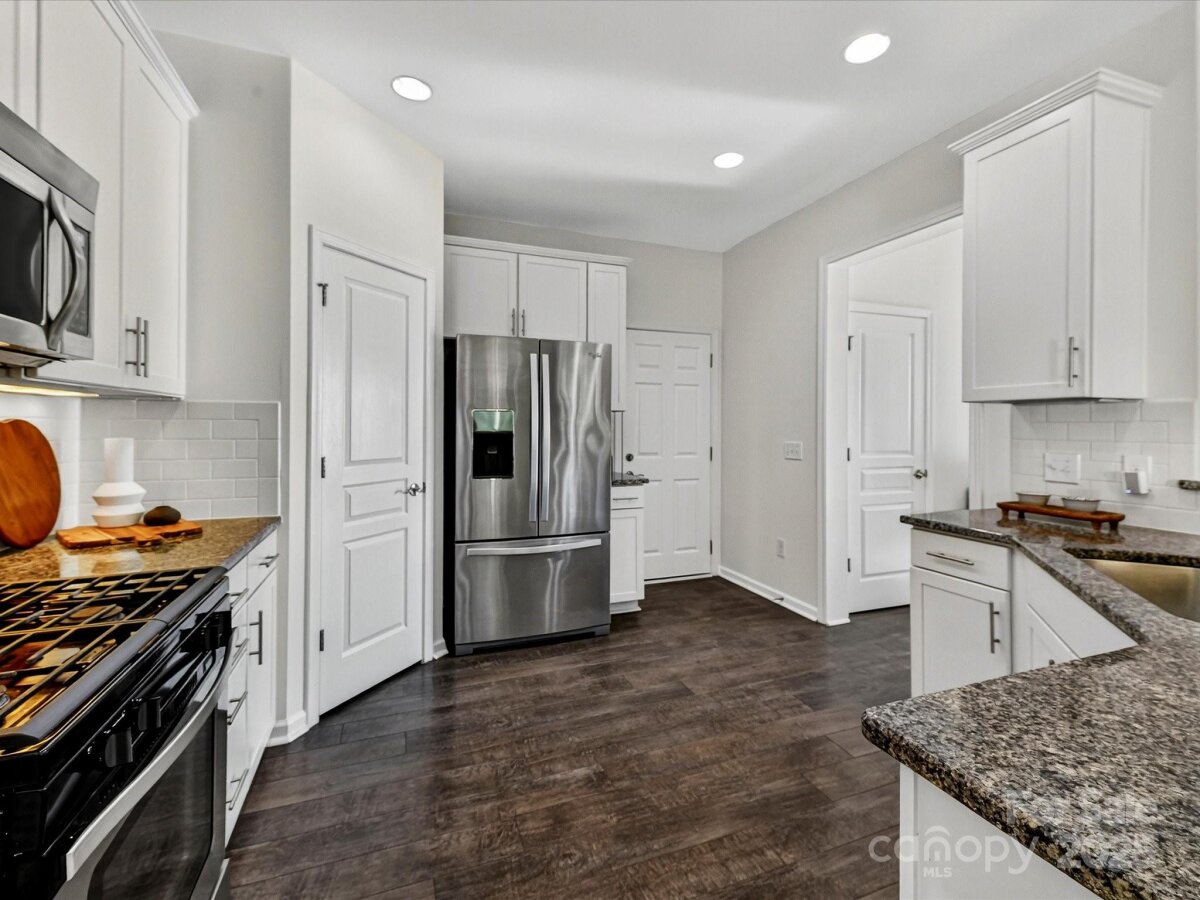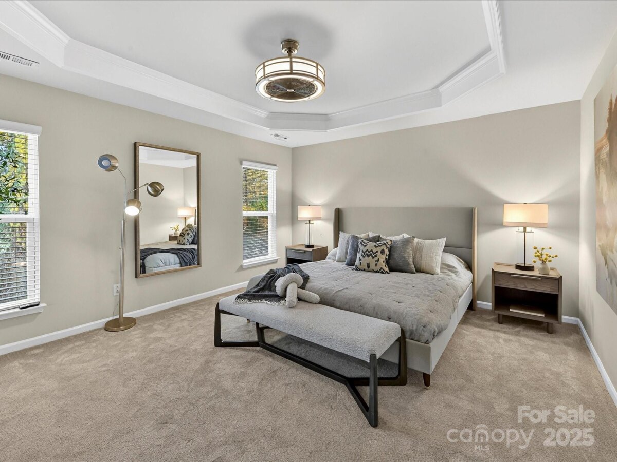 Enjoy a lifestyle with views and exceptional privacy! This coveted END-UNIT townhome overlooks Little Sugar Creek Greenway, a peaceful pond and backs to mature trees – making it one of the most scenic and private locations in gated Park South Station. East/west sun exposure delivers an abundance of bright, natural light into this modern townhome with upgrades galore. There’s even room for fur babies! A pet sanctuary underneath the stairwell boasts its own lighting and HVAC vents. Luxurious laminate flooring is both gorgeous and impressively durable. Custom lighting. Spacious great room with fireplace and inviting dining area. Gourmet kitchen offers farm style sink, pantry, breakfast bar, white kitchen cabinetry with under-counter lights and granite counters. Whirlpool stainless steel gas range, microwave, and refrigerator with water/ice dispenser. Upstairs: 9-foot ceilings. Loft is ideal for a perfectly-organized desk. Primary bedroom suite offers a tray ceiling, huge custom walk-in closet and spa-like bathroom with shower, dual vanities. a private water closet, and an extra storage closet for bed linens, towels or collectibles. Two generously-sized secondary bedrooms enjoy access to a hall bathroom with wide vanity and tub/shower. Upstairs laundry room offers beautiful washer, dryer and cabinetry. 2-car garage. 2 extra parking spaces for guests are conveniently located adjacent to the unit. Fully fenced private backyard with festive lighting and oversized patio. Resort-like amenities abound in popular Park South Station: clubhouse, fitness center, dog park, outdoor pool, playground and sidewalks. Park South Station is moments away from SouthPark Mall, the airport, major highways and uptown.