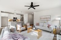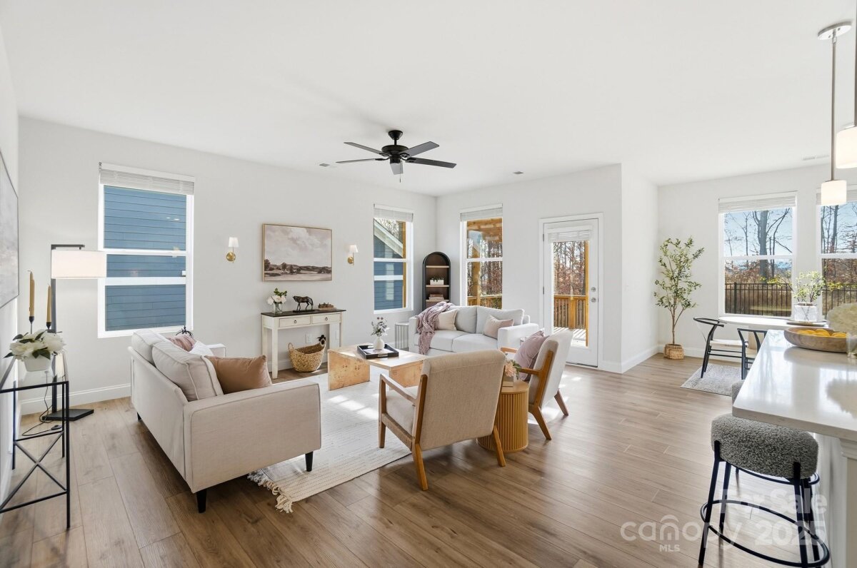 Location, location, location! Welcome to this nearly-new beauty in The Terraces at Cramerton Mills—a home that blends modern comfort, effortless style, and unbeatable convenience. Step inside and you’ll immediately appreciate the light-filled, open floor plan that makes everyday living feel spacious and connected. The chef-inspired kitchen flows seamlessly into the family room, so whether you’re hosting friends, or enjoying a quiet night in, you’re always part of the action. The gorgeous kitchen has plentiful cabinets for storage and the backsplash and countertops are like the jewelry of the home! Cook like a chef on the stunning gas range. The primary suite is a true retreat—thoughtfully tucked away for maximum privacy and complete with a generous walk-in closet and a sleek, walk-in shower that offers a spa-like experience at home. But the magic doesn’t stop indoors. Head outside to your own backyard oasis, where the property backs up to a private wooded area for tranquility you won’t easily find elsewhere. Enjoy morning coffee on the patio, afternoon lounging on the upgraded deck beneath the pergola, or evenings unwinding in your upgraded fully fenced yard—ideal for entertaining, pets, or peaceful solitude. Change your viewpoint and rock away the afternoon on the oversized front porch, too! Added bonus of an extra long driveway that can accommodate 6 cars with the 2 car garage to total 8 cars! With modern design, upgrades, exceptional privacy, and the convenience of being move-in ready, this home offers the lifestyle buyers dream of—without the wait. Don't wait, your perfect home is here! All that’s missing is you...