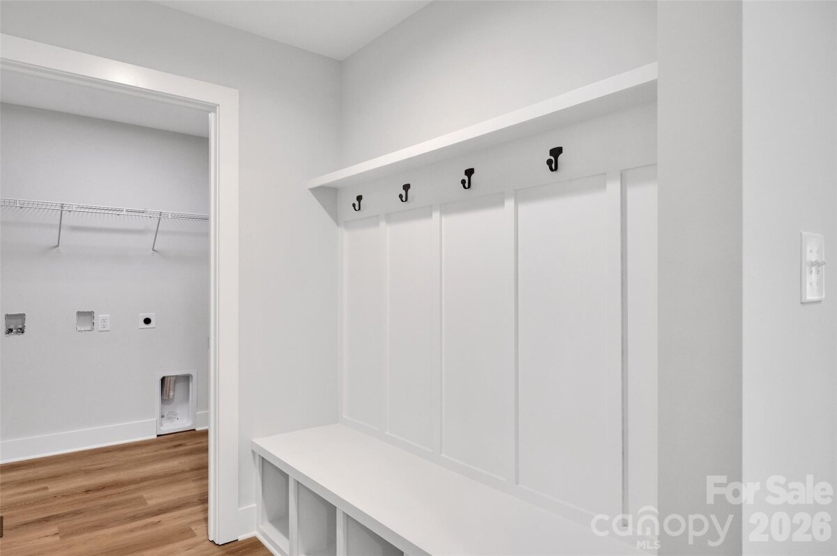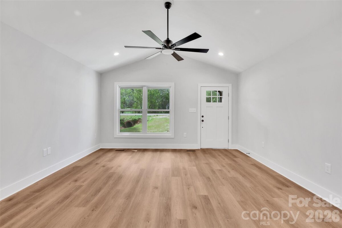 Discover this newly constructed, custom-built 3-bedroom, 2-bath home offered under $300,000. Designed with both style and functionality in mind, the home features a one-car garage and an open-concept layout enhanced by vaulted ceilings and luxury vinyl plank flooring throughout. The primary suite offers a well-appointed retreat with a walk-in closet and an adjoining bath featuring shaker-style cabinetry, quartz countertops with dual sinks, and a tiled shower. The kitchen is both practical and refined, with ample storage provided by shaker-style cabinets and quartz countertops, creating a clean beautiful aesthetic. Just off the garage, a thoughtfully designed drop zone/mudroom adds everyday convenience and additional storage. A covered back porch provides a comfortable outdoor space overlooking the backyard. Two additional bedrooms and a full bath complete the home’s layout.
