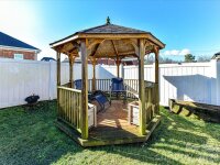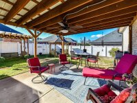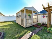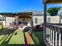 Beautiful FULL BRICK, CUSTOM home built in 2015 in a wonderful community with sidewalks & street lights, featuring a desirable split floor plan and move-in ready condition. The inviting den showcases vaulted ceilings and a cozy fireplace, flowing into a well-appointed kitchen with breakfast bar, granite countertops, tile backsplash, and adjacent dining area. The spacious primary suite offers a tray ceiling, walk-in closet, and private ensuite bath with tile floors, dual sinks, and a walk-in shower. Wood flooring enhances the foyer, den, and kitchen, while bedrooms feature comfortable carpeting. Enjoy outdoor living on the covered, oversized back patio overlooking a fully fenced backyard — a perfect setting for morning coffee while watching the birds. There is also a gazebo and outbuilding (10x12) for extra storage or workspace as well as raised beds for planting veggies, etc. Other highlights include a two-car garage while the refrigerator, washer, and dryer conveys with the home. The swing in the back yard does not convey with the home.