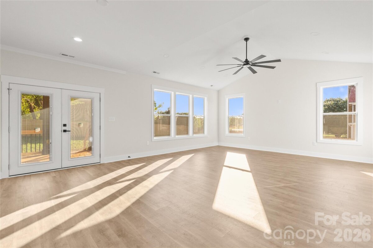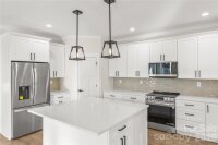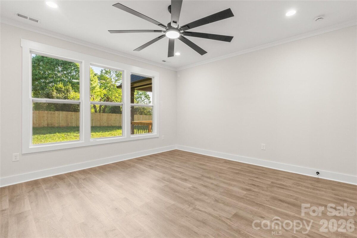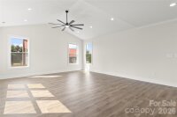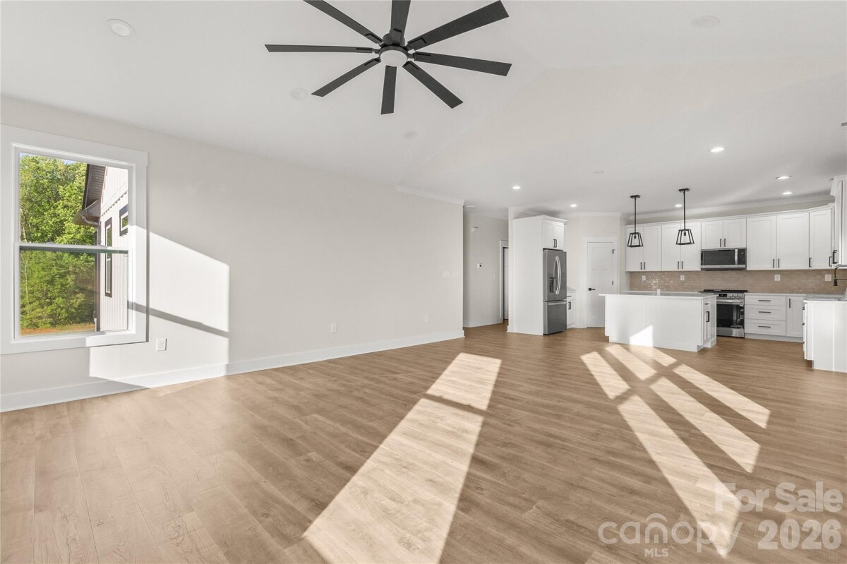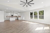 Country living but close to everything. You will love this custom-built 2025 home on a private lot with no HOA, offering 2,089 square feet of thoughtfully designed living space. This open-concept floor plan features vaulted ceilings in the living room, enhanced natural light from an expanded window package, and a 72-inch ceiling fan that anchors the main living area. The kitchen serves as the centerpiece with quartz countertops, an oversized island, very large pantry, and upgraded LG stainless appliance suite including refrigerator, slide-in range with blue porcelain interior, microwave, and dishwasher. Every cabinet and drawer in the house is soft close. Detailed trim package with crown molding and tall baseboards. The primary suite is privately positioned and features tray ceilings, large windows, a spacious walk-in closet, and a well-appointed bath with dual quartz vanity, frameless glass shower with bench, and a private water closet. Secondary bedrooms are located on the opposite side of the home for added privacy. A versatile upstairs bonus/flex room offers ideal space for a home office, media room, or guest area, complete with its own mini-split system for comfort and efficiency. Outdoor living is just as inviting with a covered rear deck featuring a wood ceiling and an additional 72-inch ceiling fan, perfect for year-round enjoyment. The property includes a large driveway, mature trees for added privacy, and a newly installed privacy fence along the rear and right side. Additional highlights include county water (no well), no HOA restrictions, LVP flooring throughout (no carpet), a two-car garage with extra storage, and energy-efficient features throughout. Home has had a home inspection and septic inspection completed