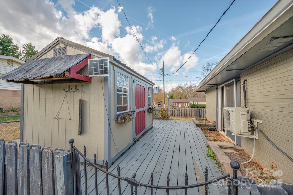 Welcome to this charming and spacious brick ranch located on a friendly and quiet street just minutes from downtown Forest City! This well-maintained home has many recent updates from 2023 including new: roof, A/C, heat pump, ductwork, mini-split, tankless water heater, and new plumbing. Situated on a generous, level lot, this property offers an incredible backyard oasis complete with an in-ground pool, pergola, and multiple storage buildings—perfect for entertaining, gardening, or simply relaxing in your own private retreat. Step inside to find multiple large living spaces. A bright front living room with hardwood floors, a second living room/dining area featuring a gas fireplace, gorgeous patterned flooring, and French sliding doors that open to the patio and pool area and ALSO a flex space that could be used for a home office, extra living space or whatever your heart desires. The welcoming front porch has a warm, wood-finished ceiling and brick flooring that gives the home true Southern charm. The kitchen offers great workspace with ample cabinetry, an island, a gas range, and views into the second living/dining area. A dual-sink vanity highlights the main bathroom, and natural light fills each room of the home. The layout provides flexibility whether you need a home office, hobby space, or extra lounging areas. Outside, the fully fenced backyard is the star of the show—complete with an in-ground pool, large deck, pergola, mature landscaping, and three storage buildings (one 10x20 and two 8x10) perfect for tools, pool equipment, workshop use, or even converting into a tiny home/guest suite for those with big ideas! Roughly an hour to Charlotte, Asheville and Greenville, SC!