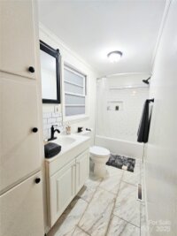 Welcome Home to this absolutely charming & tastefully updated vintage 3 Bed & 1.5 Bath home located in the highly sought after Historic Oldtown community of Cramerton steps away from Riverside park. This move-in-ready abode too with modern updates, is offering nearly 1400 sq ft in total with another approximate 400 sq ft of untouched generous attic space ripe for expansion or unlimited storage. As you walk up to the home, you will gracefully be greeted with sprawling rose bushes along a southern gallery covered porch setting making a perfect coffee, tea & conversation retreat. Upon entry, an ample sized living room with wood-burning fireplace finished with a cedar mantle awaits surrounded by original refinished hardwood floors. Off the living room is an ample dining room with built in shelves, 9' ft towering ceiling & custom original vintage craftsman molding/millwork thats a true detailed rarity. The large kitchen has refinished vintage cabinetry with new hardware, sconce lighting, & enough room to add a table or island. A spacious Master bedroom is finished with simple elegance & 9ft ceilings. The 2nd Bedroom is near the master & the 3rd bedroom has endless options offering it's own chic soaking bath & combined shower, a studio kitchenette & private secure entrance allowing this versatile space to used as a primary suite, in-law or private room rental for an additional income stream that generated {$800} monthly. Much of the home has new paint, updated bathrooms, a cozy 3 season room with a new ceiling fan & new crown molding, rear deck & solid sized fully-fenced level-yard for more outdoor entertaining & gathering space finished off with a storage shed. This home is surrounded by nature, walking, biking, kayaking & recreation offered at Riverside or Goat Island park which are community staples along with a free admission to community pool offered to cramerton residents. Community local shops all within walking distance. New development going on throughout the community. Charlotte Douglas international airport only 10 miles away. This is must see incredible opportunity offered in this golf cart welcoming community.