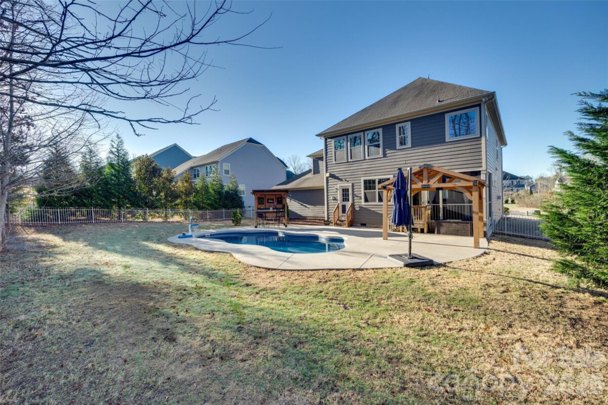 Beautiful POOL home on private cul de sac lot- with NO rear neighbors- in sought after Lawson! 6 BR/5 BA with 3 car garage! LVP floors on main level. Open floorpan and lots of natural light throughout. Chef's Kitchen w/ oversized island, SS appliances, granite countertops, dbl ovens, 5 burner gas cooktop, walk-in pantry and large breakfast nook. Large family room is perfect for entertaining! Dining room (currently used as an office) can be used in a variety of ways to suit your needs. Downstairs bedroom with stylish barn door detail and full bathroom- offers guests a space of their own. Main level laundry room w/ pedestrian door out to backyard. Upstairs the primary bedroom is a true retreat featuring a cozy seating area w/ fireplace and a spa-like ensuite bathroom. Don't miss the HUGE closet that features a bar area that further personalizes this space! Also upstairs you will find 3 more bedrooms, 2 more full bathrooms-one Jack and Jill style AND a huge bonus room/6th bedroom w/ additional ensuite full bathroom! The backyard is a serene oasis while also being the perfect spot for entertaining! Enjoy meals on the screened porch or head out to the back patio where the in-ground saltwater pool awaits. The included gazebo and bar area offer even more options for gathering. The shed will remain and is currently used as a music studio- so use your imagination and add this to the reasons why this house is THE one! It is a special home with an even more special lot! Walk to the new Union County library and Cuthbertson MS and HS which are accessed right outside the back gate or use the walkway conveniently located at the end of the cul de sac. Lawson has resort style amenities- clubhouse, 2 pools, playgrounds, fitness centers, tennis courts, miles of walking trails and more! Don't miss this one!