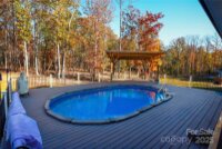 Beautifully maintained ranch home on 1.6 private acres with a heated saltwater pool, oversized deck, and multiple covered outdoor living areas. Built in 2019 and ideally located for an easy commute to Charlotte, Mooresville, Denver, Sherrills Ford, and nearby Lake Norman marinas. Features include an open kitchen with island, stainless appliances, microwave drawer, dining room, office, and a laundry room with cabinetry and sink. Main-level primary suite with seamless glass shower, soaking tub, dual vanities, and walk-in closet. Two additional bedrooms share a stylish full bath with subway tile. Upstairs bonus/4th bedroom with closet and potential to add a full bath. Additional highlights: oversized extra-deep 2-car garage, basement-height crawl space for storage, covered front porch, covered back deck, roofed grilling pavilion/bar area, and smart-home wiring. Move-in ready with privacy, convenience, and resort-style amenities.