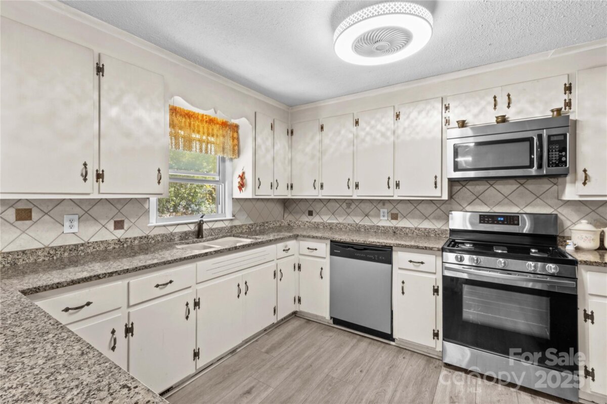 This full brick home with unfinished basement offers 3 bedrooms and 2 baths on a .83 acre lot. With interior and exterior entrances, the unfinished basement has endless opportunities. Spacious and open living areas are ideal for entertaining guests. The kitchen is complete with granite countertops, a tiled backsplash, tons of cabinet space, and matching stainless appliances. A cozy brick fireplace in the living room is perfect for enjoying cool fall and winter evenings. Located on a dead end street, this large lot provides privacy and a tree-lined back yard. Amazing location that is convenient to shopping, dining, and major interstates.