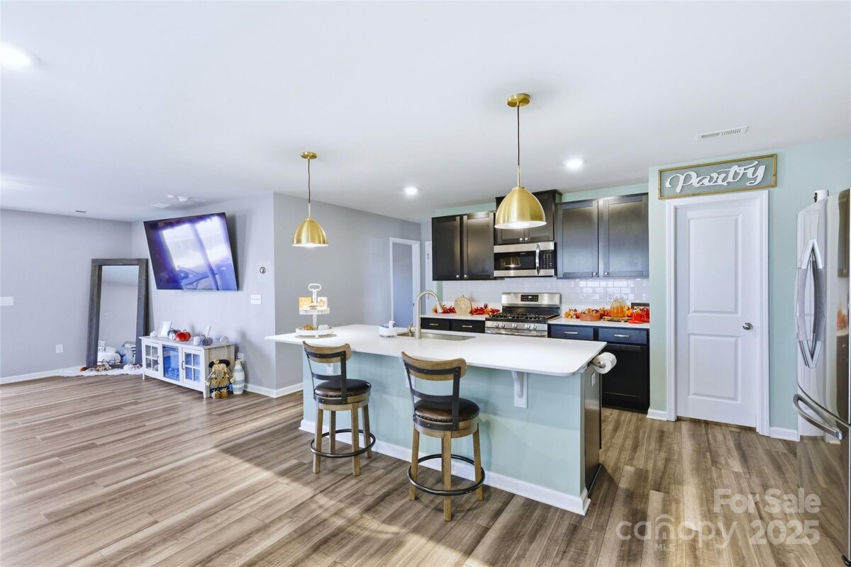 Welcome to this well-maintained and spacious 2022-built home featuring 5 bedrooms and 3 full bathrooms. The main level offers a bright, open layout with a comfortable living area and a modern kitchen that includes a large island, stainless steel appliances, a walk-in pantry, and ample cabinet space. A main-floor bedroom and full bathroom provide flexibility for guests, office use, or other needs. The upper level includes the primary suite with a walk-in closet, along with additional well-sized bedrooms and a full hall bath. The home also offers a two-car garage, a front porch, and a level yard that is easy to maintain. This home is located in a neighborhood that features a community playground, with convenient access to the Monroe Expressway (US-74 Bypass) and other major routes. A move-in-ready option with space for a variety of lifestyles.