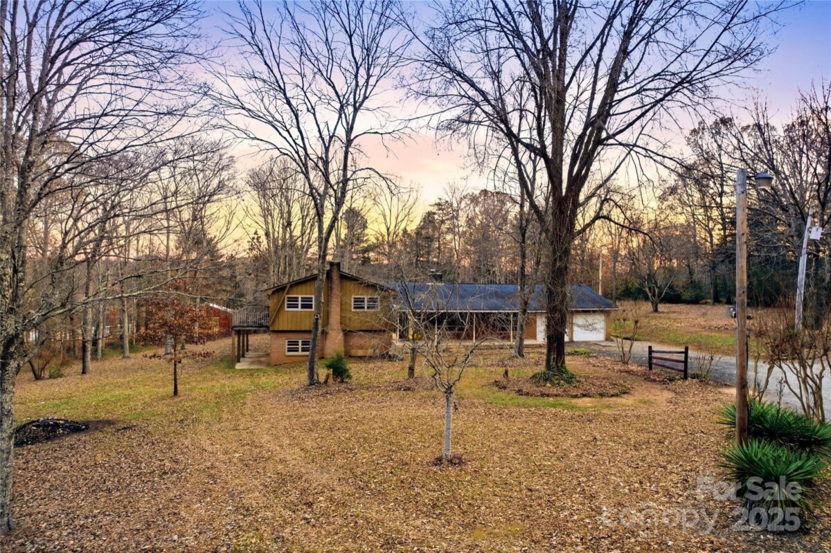Discover this unique split-level home on 5+ private acres, a serene retreat cherished by the seller for decades. Decorative plaster ceilings throughout add timeless character and charm. The main level features fresh LVP flooring with a living room, dining area, kitchen, and spacious great room, perfect for entertaining or cozy nights in. The kitchen features original wood cabinetry that provides character, with room to create your ideal space. Multiple cozy heat sources throughout include a pellet stove in the living area, a wood-burning insert in the basement, and a true fireplace in the great room, offering warmth and ambiance year-round. Upstairs, carpeted bedrooms provide comfortable spaces for family, guests, or home office needs, with both the primary and secondary bedrooms offering private access to the deck, perfect for morning coffee or enjoying quiet sunset views. A partial basement adds tremendous flexibility with a second kitchen, a bath that’s been started, currently featuring a toilet and sink and plumbed for a shower or tub, space to create a second living area, and a large stand-up storage area of over 1,000 sq. ft. Step outside to your private country oasis surrounded by tall, beautiful hardwoods: five porches and patios including a screened-in back porch and a large front porch with a porch swing ideal for unwinding with an evening drink, three picnic areas, two fire pits, a classic outhouse, 25,000 sq. ft. of tillable garden space, and your own muscadine vines ready for fresh picking or homemade jelly. A standout two-level outbuilding provides incredible space for a workshop, studio, or creative projects, while a smaller walk-in building offers additional room for tools or hobbies. This is more than a home, it is a private retreat, a garden paradise, and a place to gather, create, and enjoy rural living. Bring your horses or embrace the rural lifestyle, soaking in peace, privacy, and nature in every season, while still being conveniently close to grocery stores and modern amenities. A recorded easement along the far left side of the property provides access for a neighboring parcel.