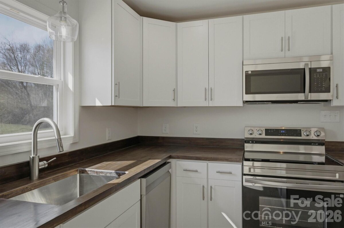 Beautifully updated brick home with two car garage in a peaceful setting on .67 acres in Hudson with easy access to Hwy 321. Updates include new roof and gutters, new windows, new central air conditioning and heat pump, new electrical wiring and panel, new hot water heater and all new plumbing system. Home was renovated to the studs and you have all new drywall and insulation, recessed lighting and fans, new doors, trim, and vinyl plank flooring. Kitchen features white cabinetry, butcher block countertops, and new appliances. Sliding glass door from the kitchen/dining area brings in lots of light and leads you to a 16x11 deck for grilling and relaxing. Property boasts plenty of parking on the newly poured driveway and large garage with two new doors. Property has been lightly landscaped and is ready for your vision!
