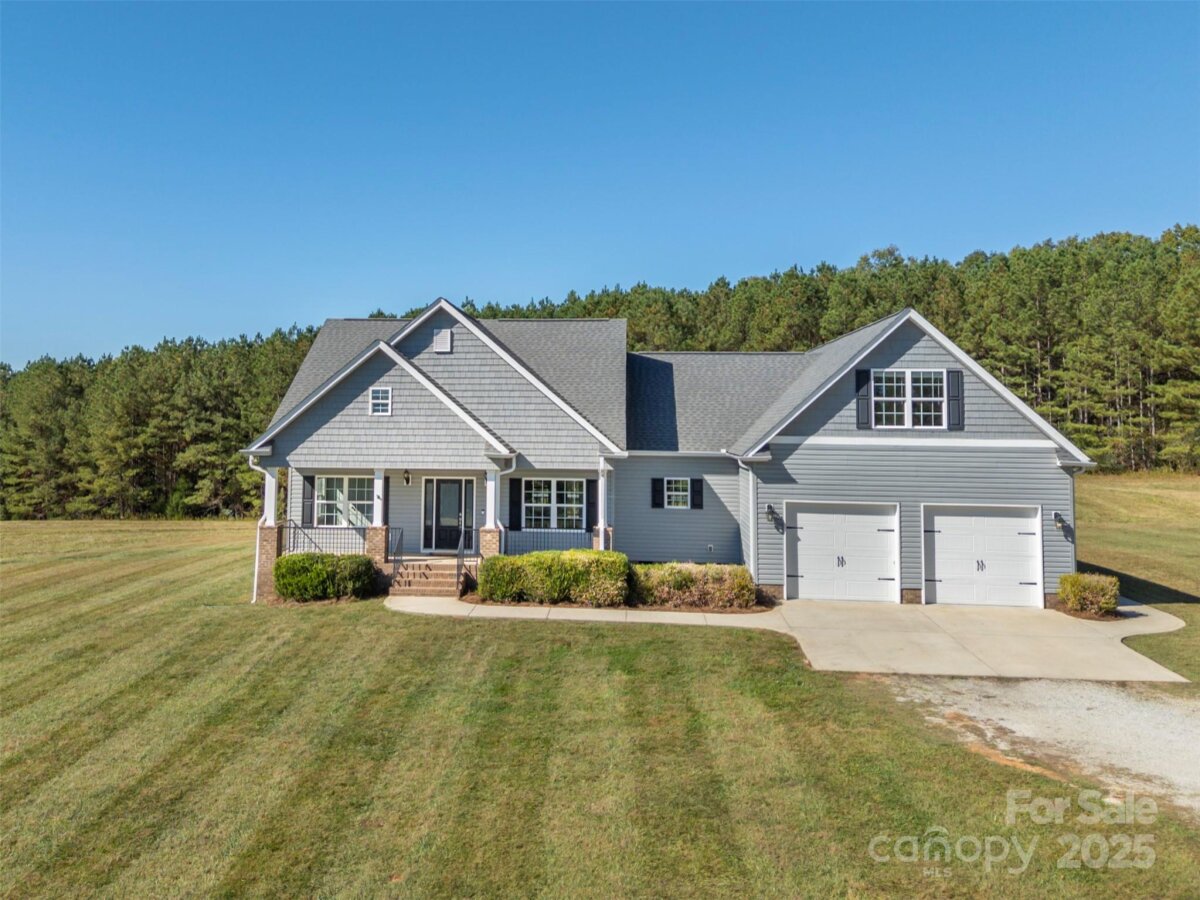 Discover peaceful country living in this beautiful 3 bedroom, 2 bath farmhouse with an attached double garage. Nestled on 4.4 picturesque acres, this property offers room to garden, roam or simply relax on the front and back covered porches and enjoy the quiet surroundings. This spacious home has a wonderful floor plan with split bedroom living. Large primary BR, huge walk in closet and large bath with beautiful tiled shower and double vanity. Large open great room, fireplace, vaulted ceilings and plenty of natural sunlight. Beautiful kitchen with concrete counters. Sliding barn doors to dining room. Bonus room is finished living space with a separate mini split and walk in access to floored attic that could easily be finished for additional living space. All interior freshly painted. Deck freshly cleaned and stained. Carpet upstairs professionally cleaned. House pressure washed. Tankless hot water heater. Home is wired for a generator. Power available for RV hookup. This property is perfect for anyone seeking a blend of comfort and rural charm.
