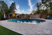 Flawlessly renovated from top to bottom, this all-brick South Charlotte residence embodies timeless elegance and modern luxury. Offering over 4,500 square feet of curated design, this 5-bedroom, 4.5-bath home seamlessly blends craftsmanship, warmth, and functionality in every space. The newly reimagined chef’s kitchen anchors the main level with custom inset cabinetry in soft white and rich walnut, complemented by Calacatta Laza quartz countertops, a premium surface prized for its luminous veining and marble-like depth. A hand-crafted wood-tone range hood, brass fixtures, and designer pendant lighting create a magazine-worthy focal point, while top-tier stainless steel appliances complete the space. Wide-plank site-finished oak flooring flows throughout, accenting layered crown moldings and millwork that give each room a refined architectural presence. The primary suite feels like a boutique spa with its own transformation: Statuario Venato porcelain slab shower walls, Calacatta Laza quartz vanities, brushed-gold fixtures, a freestanding soaking tub, and a custom walk-in closet fitted with soft-close built-ins and brass hardware. Two additional fully renovated bathrooms mirror the same caliber of design, each featuring stone-top vanities, updated lighting, and seamless tile work. Upstairs, the bonus suite has been elevated into a genuine destination for entertaining. With a wet bar wrapped in emerald granite, a wine refrigerator, and a massive open footprint, it’s an ideal space for billiards, theater seating, or game-day hosting. Both the bar/game room and guest suite with French doors open to a private balcony overlooking the resort-style pool, perfect for those tranquil morning coffee or late night glass of wine views. Step outdoors to discover your personal retreat: a salt-water pool surrounded by travertine-pattern porcelain decking, a built-in outdoor kitchen with grill, sink, refrigerator, and mounted TV, and a gazebo lounge with a second TV for game nights under the stars. The lush backdrop of brick and natural stone privacy walls completes the feeling of an exclusive resort. Additional highlights include dual new HVAC systems (up and down), a new double front door making a bold first impression, updated fixtures throughout, and designer touches that elevate every square foot. Perfectly positioned in the coveted Olde Providence South community, this home offers premier access to SouthPark, Arboretum dining and retail, and top-rated schools. Every upgrade is complete; simply move in and live the lifestyle of effortless luxury and refined Southern charm.