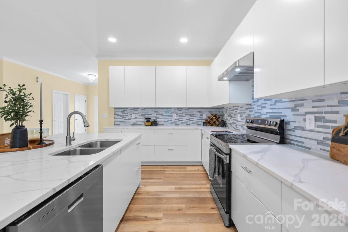 Need more space, but not more chaos? Welcome to The Paddocks, a charming community nestled in the heart of Maiden in Catawba County, where this newly built brick home sits on nearly three-quarters of an acre with room to breathe in every direction. Step inside to wide-plank LVP flooring, crown molding, and encased windows that give every room a finished, intentional feel. The open main level flows naturally from the living room into the kitchen, where sleek flat-panel white cabinetry, quartz countertops, tile backsplash, new stainless appliances, and a large island with deep storage drawers make the space as functional as it is good-looking. A dedicated breakfast nook and separate dining room give you options for how you gather. Upstairs, the primary suite is the kind of room you don't rush out of. Trey ceiling, plush carpet, windows on three sides, and an en suite bath with a double vanity, quartz countertops, and a frameless glass shower tiled floor to ceiling. Two additional spacious bedrooms share a full bath, and two generous loft spaces give the upper level a flexibility that most homes simply don't have. Home office, media room, craft studio, guest lounge. There's also an upstairs laundry room that makes everyday living easier. The covered front porch is the right place to start a morning, and the Trex back deck gives you an easy transition to the yard when the day winds down. Convenient to I-40, Hwy 321, the Apple plant, Jacob Fork Park, and everyday shopping and dining.