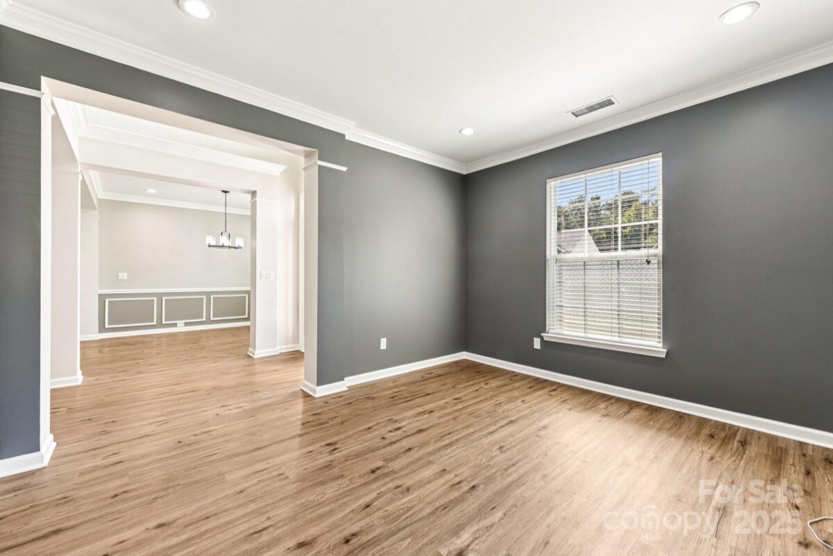 Fabulous, move-in ready home in a great Matthews location! Spacious rooms, beautiful kitchen with granite countertops, pantry, breakfast area, and a gas stove. All appliances stay with the home including the washer and dryer. Fresh, touched-up painting is done, and vinyl plank flooring is installed throughout the home, except in the bathrooms. An open foyer, flexible living space, formal dining room, one bedroom, laundry, and a full bath are all downstairs, and five spacious bedrooms and two baths upstairs. Large primary suite with a huge walk-in closet. The central air unit is almost 6 years old, and the gas furnace is about 2 years old. Driveway has been extended by three feet on each side. Enjoy the fabulous outdoor space with a covered gazebo and extended patio in the fully fenced backyard. The property is conveniently located just off Independence Blvd, behind the Windsor Square plaza, and is close to numerous shopping and dining options.