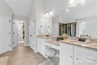 Welcome home to this impeccably maintained 4 bedroom/4 bath farmhouse-style retreat in the heart of booming Belmont. Perfectly situated on nearly an acre of land, this property offers you the ideal blend of space, style and serenity both inside and out! A charming covered front porch welcomes you into a grand two-story foyer, where abundant natural light fills the open and airy floor plan. The dramatic two-story living room, framed by expansive windows and elegant custom built-ins, flows effortlessly into the chef’s kitchen — complete with a generous island, sleek white cabinetry, stainless steel appliances and a walk-in pantry. A formal dining room provides the perfect setting for gatherings, while a main-level bedroom or bonus room, full bat, and convenient laundry room add versatility and function. Upstairs, the primary suite serves as a private sanctuary, featuring a spa-inspired bath with a soaking tub, stand-alone shower and spacious walk-in closet. Three additional bedrooms and two full baths provide ample space for family and guests alike. Continuing out back, you'll find a covered back patio, ideal for relaxing evenings or weekend entertaining amid peaceful surroundings. Your spacious side load garage even comes with a Tesla charger hook-up! Move-in ready and brimming with modern charm, this Belmont beauty perfectly balances comfort and sophistication — offering the lifestyle you’ve been dreaming of!