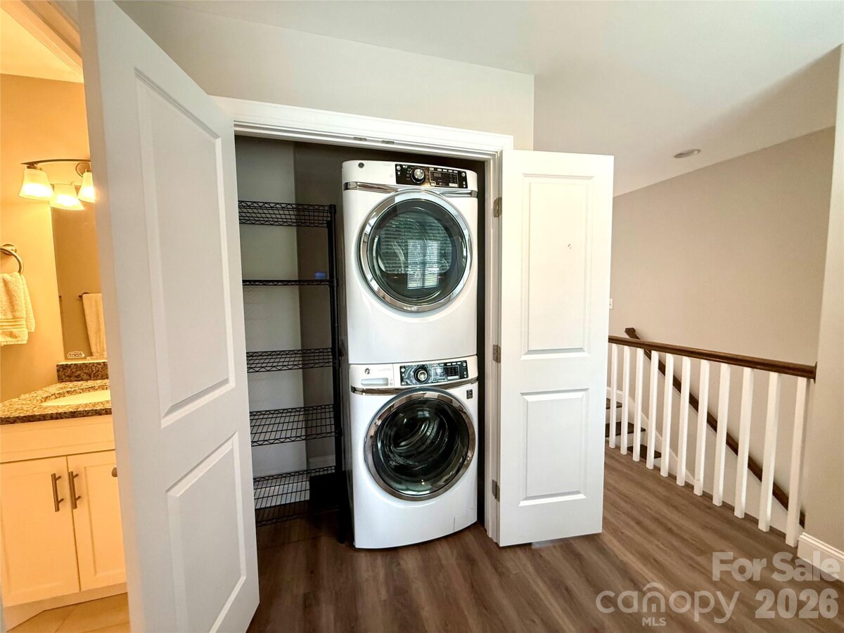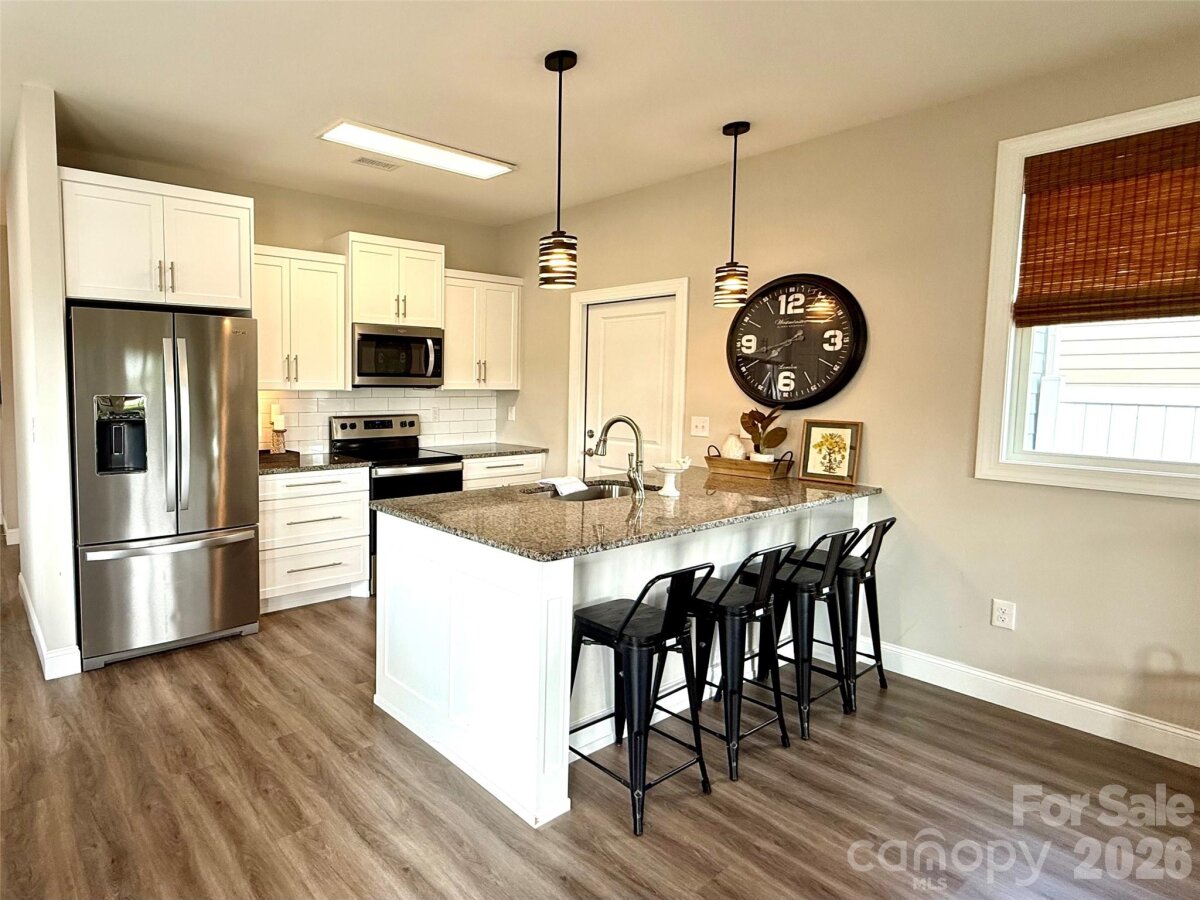 ABSOLUTLEY ADORABLE newer home in the heart of Viewmont! Walk to schools, shopping, dining & parks! Inviting front porch welcomes you to this move-in ready home! Fantastic open, light, airy floorplan optimizing square footage w a bedroom & full bath on the main level. White kitchen cabinets, granite countertops, subway tile backsplash, large bar area with seating for four, walk-in pantry, separate dining area that has French doors leading to generous sized patio, level fenced back yard. Good sized sitting area w abundant natural lighting. All vinyl plank flooring & tile throughout! Upstairs offers a loft area, spacious primary suite w private covered deck, WIC, luxury bath w granite top vanity & double sinks, nice, tiled shower. Another bedroom, full bath, storage closet, laundry closet w stackable washer/dryer and shelving are also on upper level. Great outdoor space with front porch, newly added patio out back and deck off primary suite! Impressive inside & out! A delight to show!