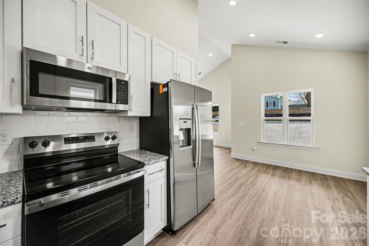 Breathtaking new construction 3 bed, 2 bath home in south Gastonia! Prime location off of 321 with access to parks, shopping, and dining. Open floorplan featuring 9 foot ceilings and luxurious finishes including granite countertops, white shaker cabinetry with soft close doors/drawers, subway tile backsplash, and stainless appliances. Primary suite offers oversized walk-in closet and ensuite bath. Floorplan features ample storage, dedicated pantry, and laundry area. Complete with covered front porch. Turnkey move-in ready home perfect for first time buyers and investors alike! Builder warranty included.