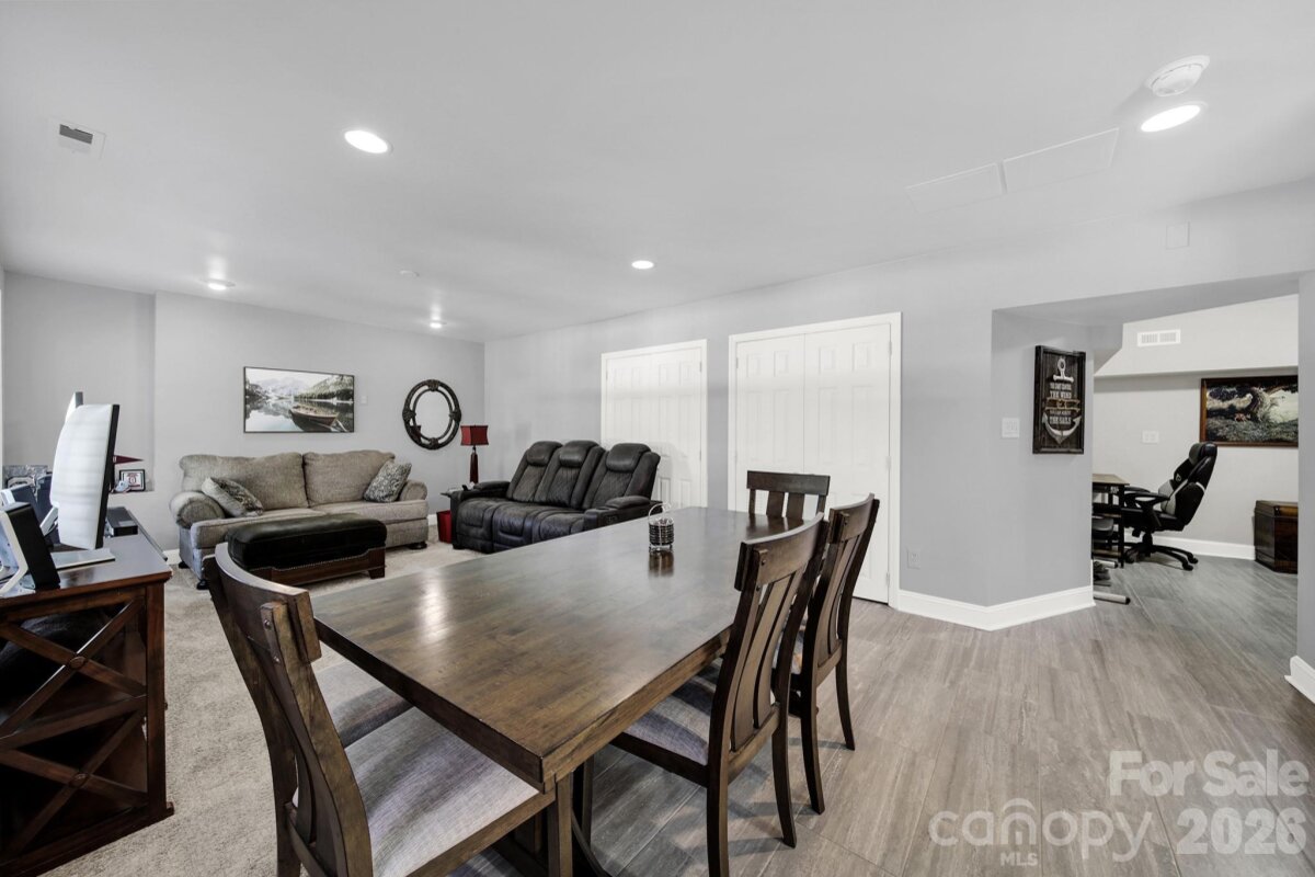 Lovely two-story home with a rare finished walk-out basement, ideally located in desirable Mooresville. Step inside to an inviting floor plan with flexible spaces for everyday living. Kitchen offers plentiful cabinetry, granite countertops, stainless steel appliances including a gas range, and pantry. Adjacent family room with a cozy wood-burning fireplace, along with the living room and dining room, provide areas for relaxing or entertaining. The screened-in porch overlooks peaceful surroundings and is a comfortable spot to enjoy a cup of coffee or read a book. A laundry room and half bath complete the main level. Upstairs, the spacious primary suite features a tiled shower, soaking tub, dual-sink vanity, and walk-in closet. There are three additional bedrooms and a full bathroom. The finished walk-out basement adds versatility with a bedroom, rec room, and bonus room, well suited for guests or even multi-generational living. It also provides direct access to the expansive, fenced backyard featuring a large patio and above-ground pool. Located directly across from the Mooresville Golf Course and just minutes to Downtown Mooresville, Lake Norman, and I-77. Zoned for the highly regarded Mooresville Graded School District.