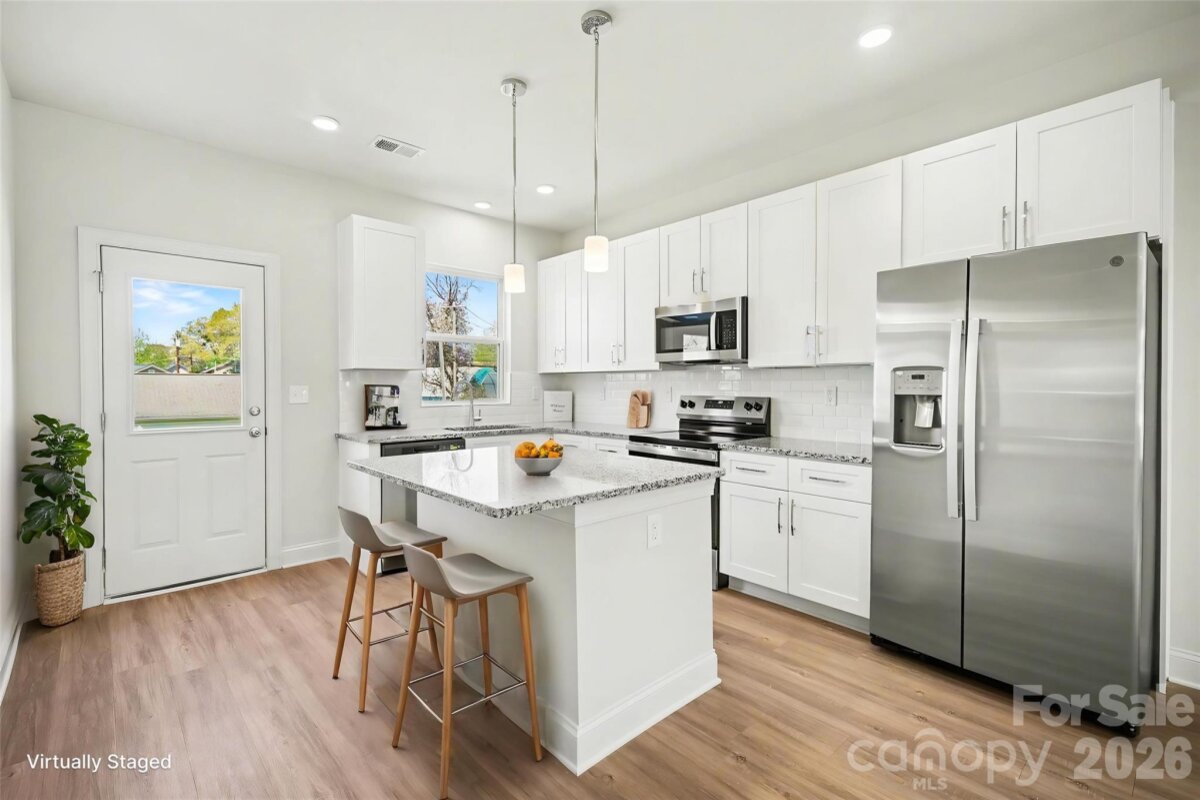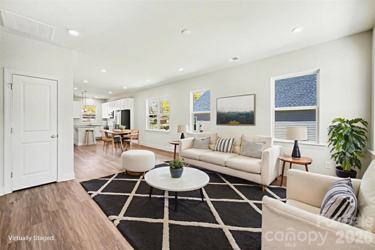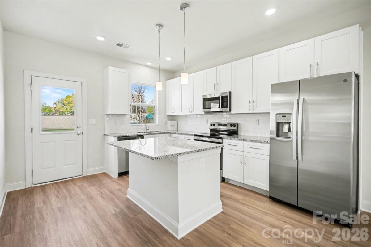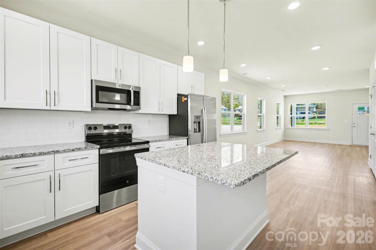 Breathtaking new construction 3 bed, 2 bath home in south Gastonia! Prime location off of 321 with access to parks, shopping, and dining. Open floorplan featuring 9 foot ceilings and luxurious finishes including granite countertops, white shaker cabinetry with soft close doors/drawers, subway tile backsplash, and stainless appliances. Primary suite offers oversized walk-in closet and ensuite bath. Floorplan features ample storage, walk-in pantry, and dedicated laundry room. Complete with covered front porch & rear patio. Turnkey move-in ready home perfect for first time buyers and investors alike! Builder warranty included.