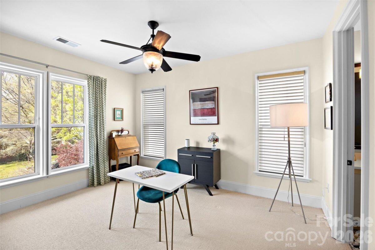 Stunning Craftsman in a great Chantilly location connected by a neighborhood path to the Chantilly Ecological Sanctuary which features 1.6 miles of walking trails and ponds plus all of the included amenities of Chantilly on The Green, which also include walking trails, green spaces, extensive landscaping, a fire pit, dog park, benches, and a gazebo with a grilling station. Inside, tradition meets modern convenience with an open floor plan with fantastic flow through the main living areas, site-finished hardwood floors, and soaring ceilings accented by rough-sawn box-beam rafters. The kitchen boasts a large island and ample counter space, accented by KitchenAid appliances and endless cabinetry storage. The first floor also features a full office and first-floor bedroom with an ensuite bathroom, along with a covered front porch and covered back patio, creating flexible living spaces for many buyers. Upstairs, the light-filled primary suite features dual walk-in closets and the perfect retreat of a bathroom with a soaking tub and dual vanities. On the upper level, you have two bedrooms with en-suite bathrooms and a huge laundry room. With a detached two-car garage and all-new exterior paint, this lightly lived-in, move-in-ready home creates a fantastic location within the neighborhood, plus the convenience of the growing Midwood and Elizabeth neighborhoods minutes away!