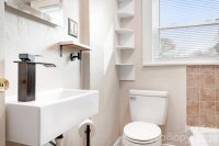 There is so much to love about this home! Let's start with the location- literally minutes to Downtown Mooresville where you can enjoy restaurants, shopping, festivals, parks, arts and the social district. So much to do and see just right around the corner! The home itself has so much character- inside and out! Beaming hardwood floors greet you upon entrance and run through the living, dining and both bedrooms offering timeless character & warmth. Stylish kitchen features gray cabinetry and a vintage oven in working order(a true classic design!). Both bedrooms have two closets, ample room for storage. The bathroom has a tiled shower w/custom details including a built-in linen cabinet for extra storage adding both style & functionality. Outside, the nearly fully fenced, large flat lot is ideal for entertaining, gardening, or relaxing. Enjoy a spacious deck, firepit, greenhouse, and built-in garden beds—ready for spring. A standout feature is the handcrafted workshop/storage shed, complete with a custom sliding door, new concrete floors, workbench, shelving, and repurposed brick flooring at the entrance. Major updates include a new electrical panel, energy-efficient split HVAC system, newer vinyl windows with new screens, newer water heater, black seamless gutters, and a fully encapsulated crawlspace with dehumidifier and new insulation. Survey on file for the fenced lot. Compared to recent comps, this home is fully done, truly move-in ready, and located in a great neighborhood—offering exceptional value with no projects needed. Homes this updated and just a short distance to Downtown Mooresville are rarely available. Feature sheet available upon request.