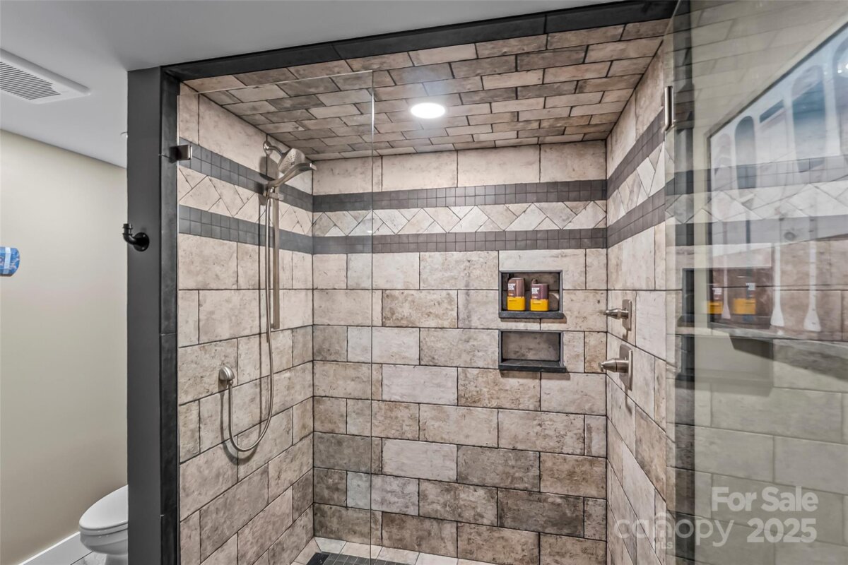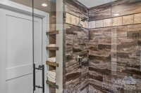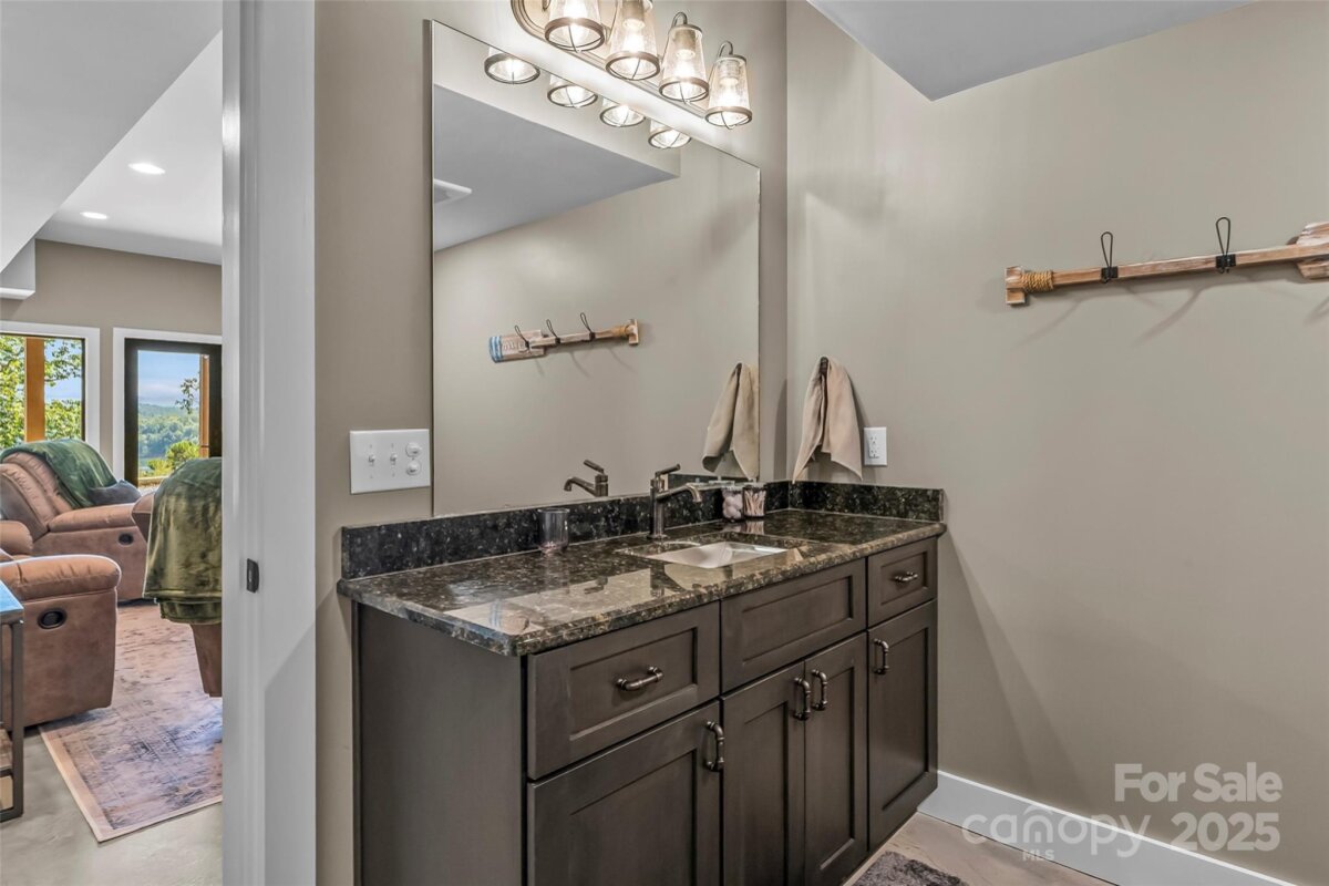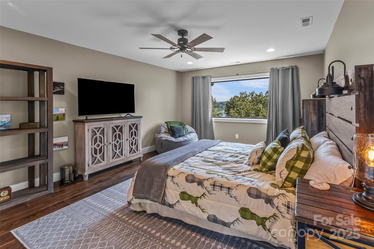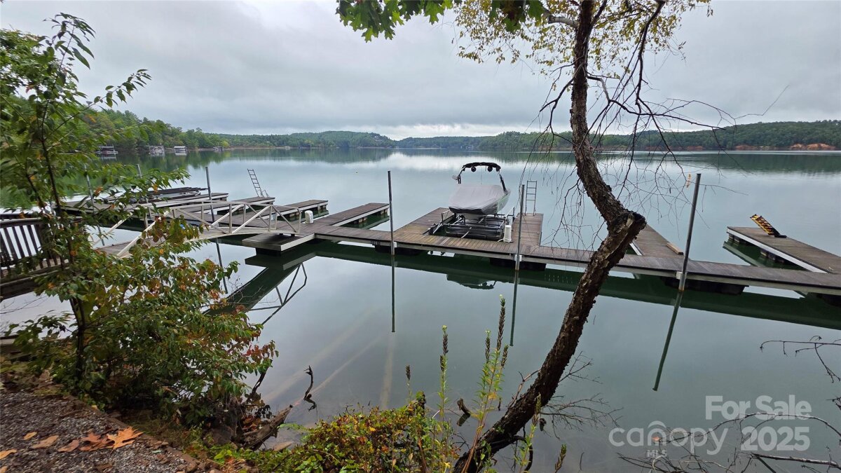 Welcome to this stunning lake view retreat, thoughtfully designed for comfort and year-round enjoyment. This lake home combines rustic charm with modern amenities. The main level features a chef-inspired kitchen with a leathered granite island, gas range, farmhouse sink, pantry, and open dining area. The great room is anchored by a cozy wood-burning stove and expansive windows that frame sweeping, long-range water views. Step outside to a screened porch with a stone fireplace or relax on the covered and open decks which are ideal for entertaining. The main-level primary suite includes a spa-like bath and walk-in closet for convenience and privacy. Upstairs offers an additional bedroom with views, a full hall bath and a versatile loft space. The finished basement extends living space with a family room, bedroom, hall bath, and laundry. A lower-level garage provides storage for a UTV or golf cart. This provides easy access to the path leading to the private, deeded boat slips reserved only for the 8 adjacent water view lot owners. Keep your boat here year round and get out on the lake with ease. Just 15 minutes to Marion shops, restaurants and entertainment. Bear Cliff is a quiet gated community on the north side of Lake James with close proximity to Lake James State Park, Fonta Flora Trail and Pisgah National Forest.
