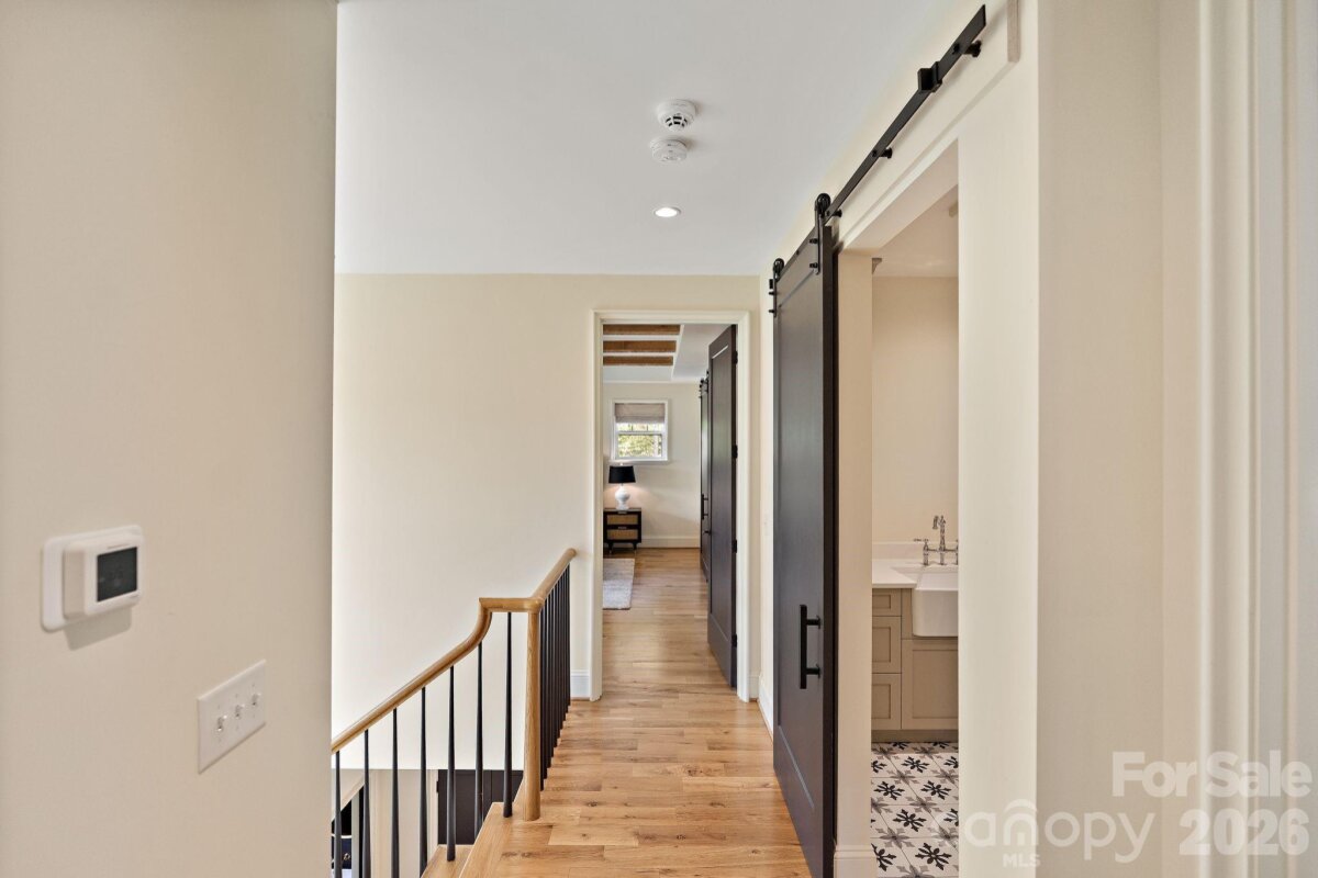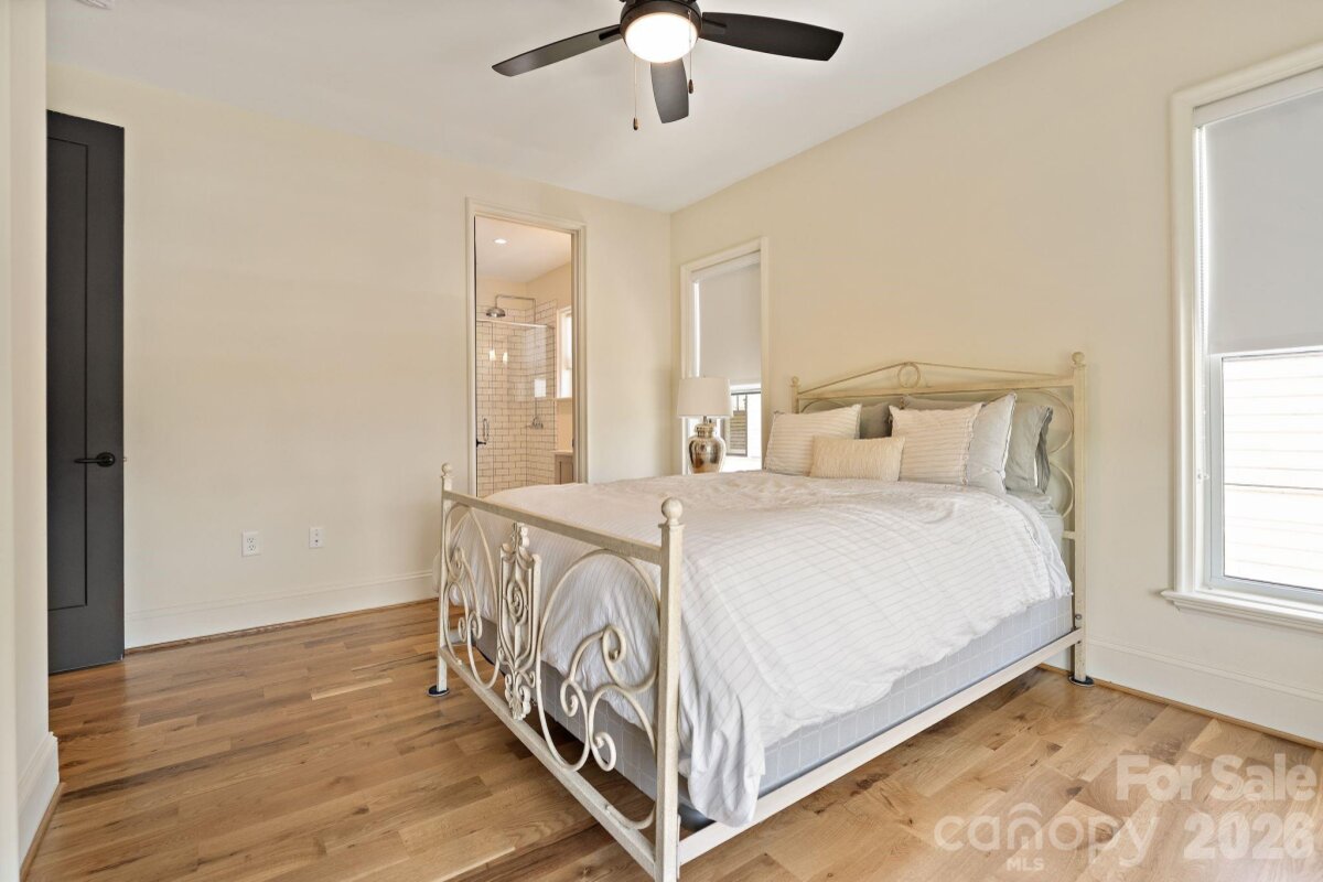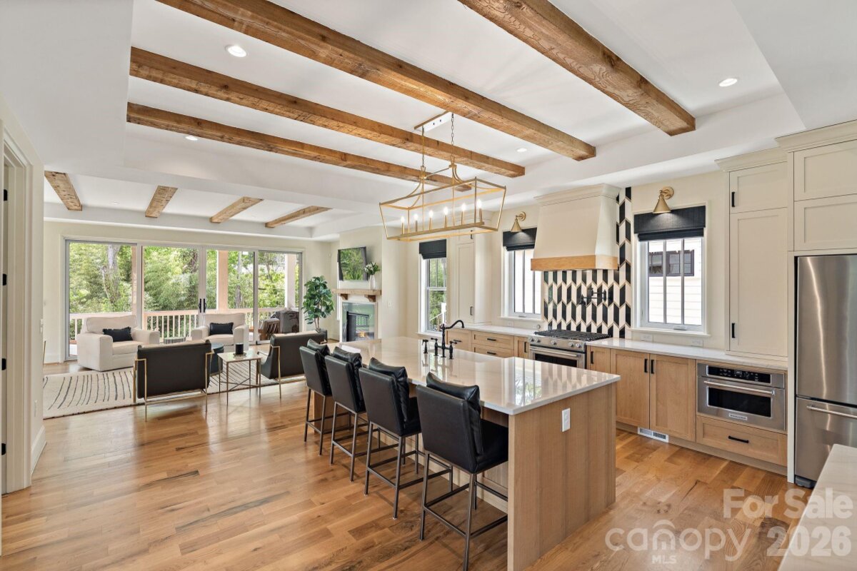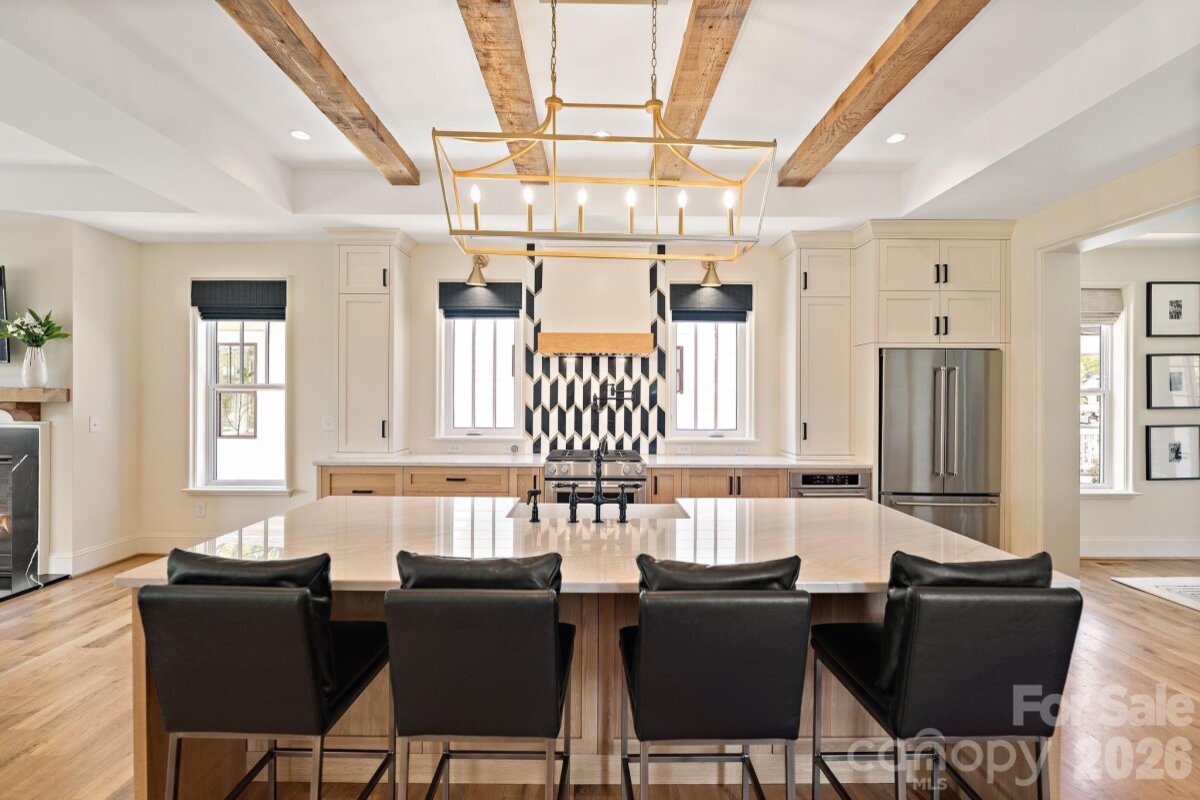 Step into this stunning 2022 Craftsman-style home, thoughtfully designed for both comfort and modern living. The heart of the home is a spacious gourmet kitchen featuring an impressive 8-foot quartz island—perfect for entertaining—alongside an oversized walk-in pantry complete with custom cabinetry and quartz countertops. Rich hardwood floors flow seamlessly throughout, leading into a generous living area highlighted by a one-of-a-kind designer wet bar, ideal for hosting guests or relaxing in style. The primary suite is a true retreat, showcasing elegant wood beam accents, a ceiling fan, and custom window treatments. The luxurious en-suite bath offers a soaking tub, dual vanity, tile flooring, and a private water closet for added comfort. Each of the second and third bedrooms features its own private full bath, providing convenience and privacy for family or guests. The gated drive leads to an oversize rear-entry garage with ample space for potentially four cars, plus built in storage shelves. Located at the end of Chesterfield Ave and part of Chantilly on the Green community, which allows one to take advantages of all the amenities - walking trails, fire pit, dog park and more.