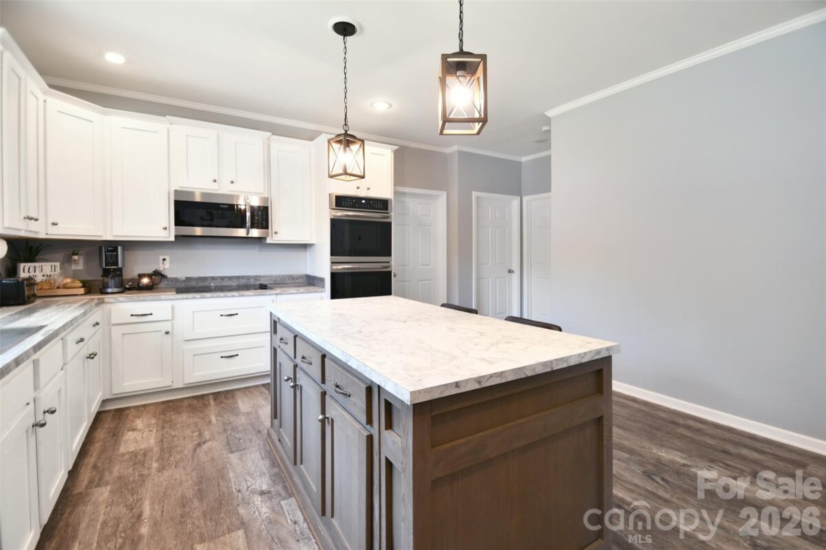 Here's your dream farmhouse retreat on nearly 6 acres, perfect for animal lovers, hobby farmers, or those needing space for a home business. Enjoy an open floor plan with 9ft ceilings, natural light, & laminate flooring. The spacious kitchen is designed for entertaining with a large island, double oven, and farmhouse sink. It flows seamlessly into the family room, which includes a gas fireplace, crown molding and built ins. Main-level primary suite has custom closet, dressing room, and spa-like bath. 2 additional bedrooms and full bath are on main floor offering comfort and convivence for family or guests. Upstairs offers 2 bedrooms, a full bath, and a bonus room. Relax on the massive front porch or spacious back deck. 3-car garage with loft storage. Horse or hobby ready barn/workshop with HVAC, tack room and kitchen. Fenced pastures with auto waterers, hay barn, run ins and equipment shed. This property offers privacy & rural charm yet convenient access to High Rock Lake & I-85