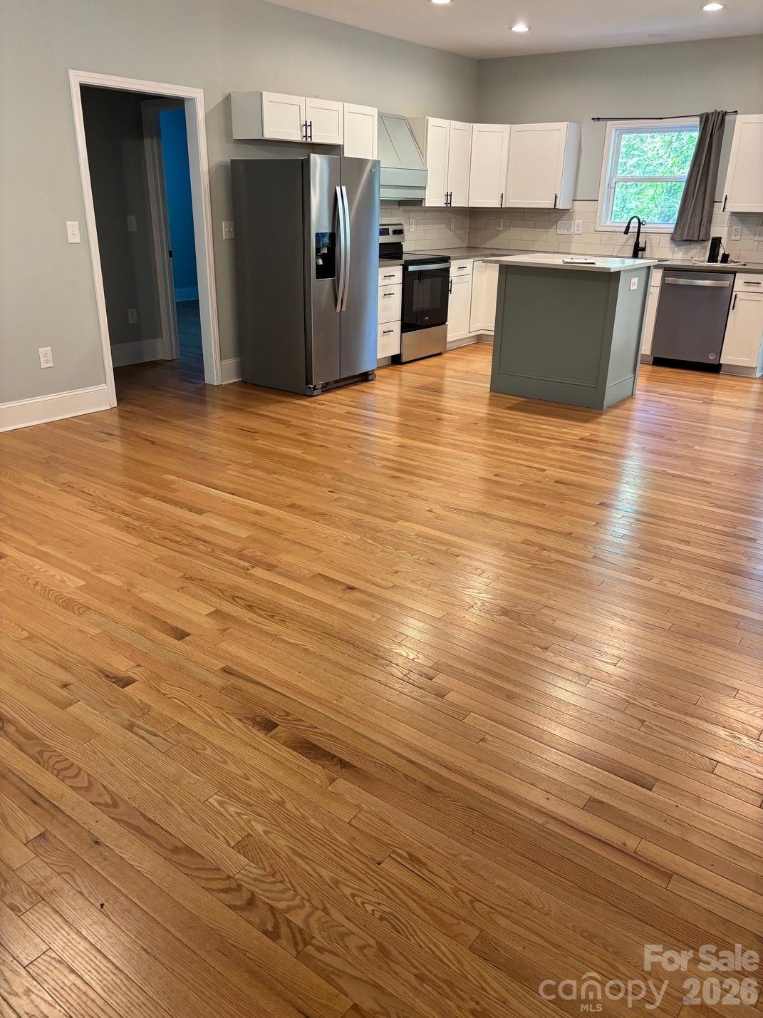 One story living and built in 2024! Close to the quaint and charming town of York, SC! This home features hardwood foors, gourmet kitchen that includes eye-cathing white cabinets, beautiful quartz countertops, island and a spacious eat-in breakfast area. Stainless steel appliances including refrigerator, waher/dryer will remain with the home. Kitchen is open to the generous sized family room. Split bedroom plan allows for privacy from primary bedroom to the two other bedrooms and guest bath. Primary en-suite enjoys a custom walk-in closet and dual vanities. You'll love the covered front porch and the expansive deck on the back of the home! Fenced yard for privacy and conveniently located near restaurants, shops and Historic York!