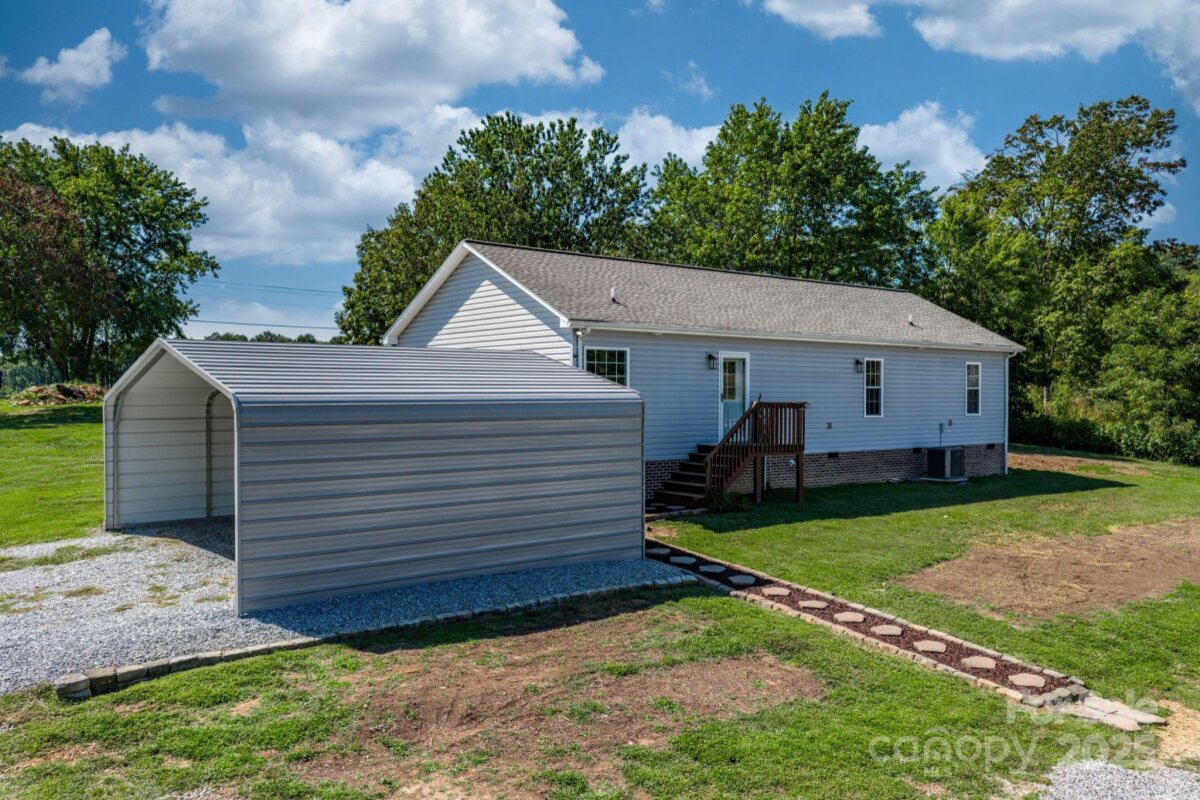 This beautifully maintained and planned out 3-bedroom, 2-bathroom ranch home, 1,350 sq ft, built in 2018, sits on approx. 1.51 acres and offers an open floor plan with modern finishes. The kitchen features soft-close, real wood cabinets with granite countertops, while each bedroom boasts a walk-in closet, with the primary suite including a luxurious tub and shower. Additional highlights include a convenient mudroom with washer/dryer, a detached 2-car garage (approx. 1300 sq ft) with 220 and 110 outlets, and a metal 2 car carport. The HVAC system has been routinely serviced, with the last service in August 2025. This home combines comfort, functionality, and ample outdoor space—perfect for both everyday living and entertaining!