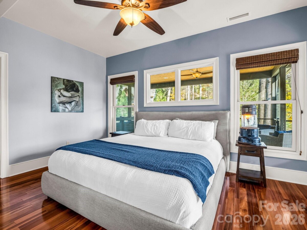 Rare opportunity, beautifully designed Arts & Crafts home offering main level living in the gated community of Firefly Cove. Three bedrooms and 2.5 baths, open floor plan, Brazilian cherry wood floors, wood-burning stove and an abundance of natural light. The chef's kitchen features a massive granite island with a breakfast bar, a gas cooktop with a custom copper hood, and double ovens. Spacious primary suite with tiled shower, garden tub and dual vanity. Go outside to the expansive 447-square-foot screened back deck, accessible from the dining room and primary bedroom, where you can enjoy serene sounds and views of the creek. The meticulously landscaped yard also features a stone patio and there is even a hot/cold water plunge tub. Upstairs, two generously sized guest bedrooms and full bath with dual vanity. Two-car garage and F.R.O.G that can serve as a playroom, office or additional living space. Community amenities include stunning clubhouse, gym, outdoor heated saltwater pool and lake access.
