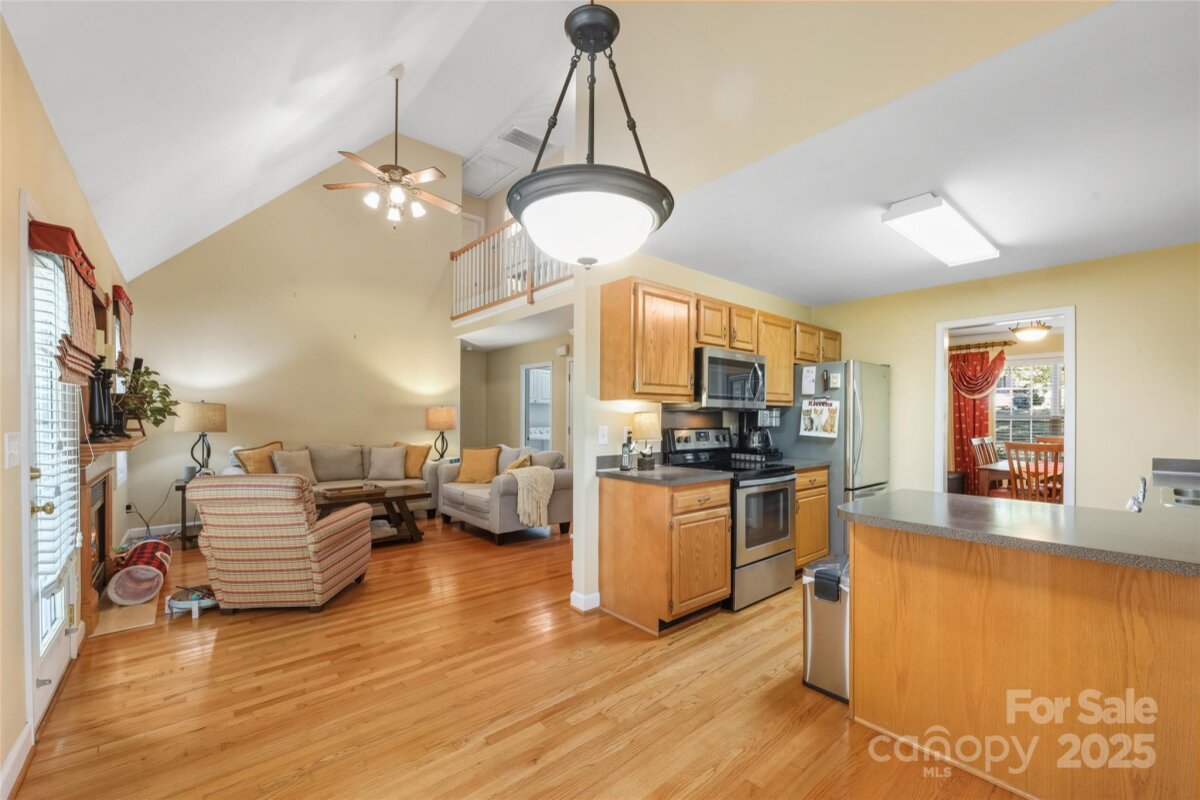 The owner loved this delightful home in its welcoming and friendly neighborhood with its sense of community. You will, too! This gracious home offers beautiful wood flooring, an open floor plan, and dramatic entry and staircase. The primary bedroom is on the main floor with a generous en suite bath. The open staircase leads to a catwalk to the upstairs bedrooms and hall bath. The catwalk overlooks both the gracious foyer and the living room with gas log fireplace. You'll find great storage in the attic spaces and the double garage. The deck overlooks a serene back yard with natural areas and plenty of trees to invite wildlife. It's well located near Union Street and I85.