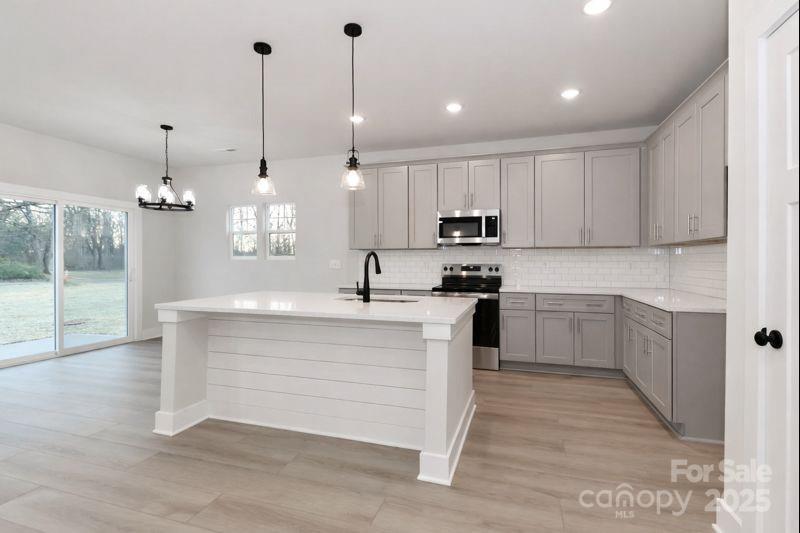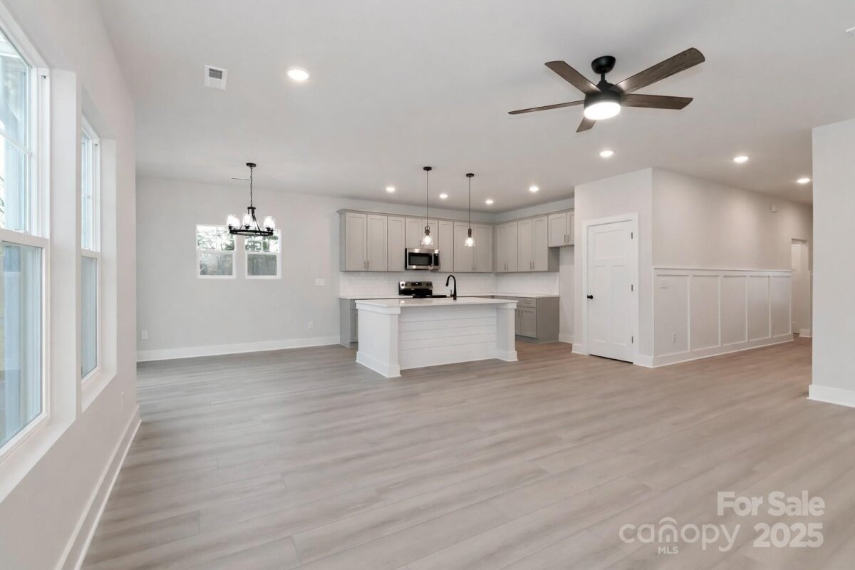A new 2,062-square-foot home with 3 bedrooms and 3 bathrooms, featuring an open floor plan and a second-level loft, is available north of Statesville, North Carolina. Located on a 0.53-acre lot, the residence is a suitable option for first-time buyers, those looking to downsize, or investors. Key features include: Open floor plan with spacious living and dining areas, stainless steel kitchen appliances, quartz countertops, tile backsplash, pendant lights and ceiling fans. Luxury vinyl plank flooring throughout main living areas including the primary bedroom and stairs with carpeted loft upstairs and secondary bedrooms for comfort. Covered front porch, back patio and private driveway that enters into a 2-car garage.