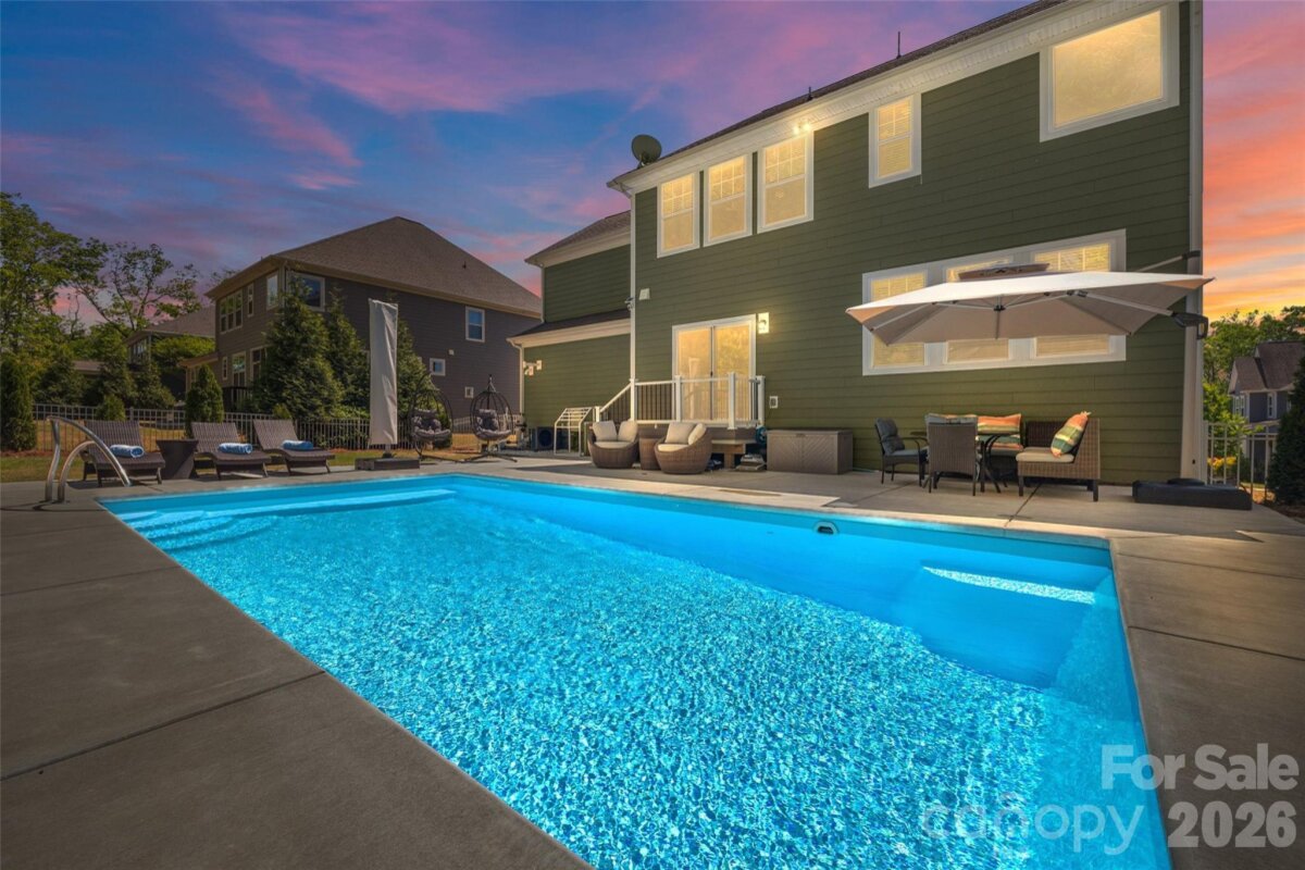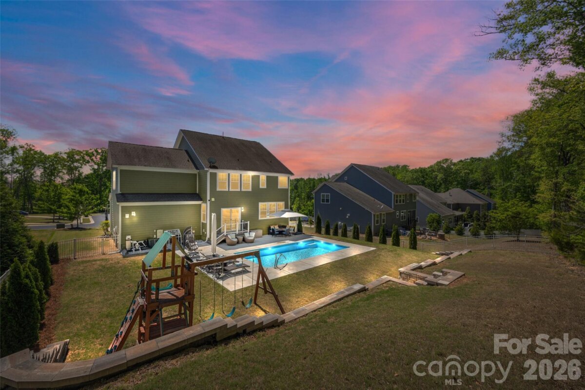 Tucked away on a quiet street in popular Lawson, this 5 bedroom, 3.5 bath POOL home offers the perfect blend of comfort and outdoor living! Pride of ownership shines through both inside and outside in this well maintained home. Outside a TrexDeck landing and stairs lead down to the expansive pool area. The 2023 saltwater pool is equipped with BOTH a heater and a chiller! Extensive hardscapes including a retaining wall, steps, and lighting provide endless options for gardening or other uses and room for you to personalize the yard further. The privacy of mature trees behind the home coupled with no rear neighbors, adds to the unique setting of this home. Inside, the main level boasts a dining room, office w/ French doors and large family room with gas fireplace. The gourmet kitchen is complete with stainless steel appliances, granite countertops, tile backsplash, double ovens, gas cooktop, large island with seating, breakfast nook and walk-in pantry! Upstairs, you’ll find all the bedrooms, including a large bonus room with an included Murphy bed and its own private ensuite bath—perfect for use as a guest suite! Kitchen refrigerator, washer, dryer, ALL pool equipment and playset in yard will convey. Walk to the new Union County library and Cuthbertson MS and HS which are accessed right outside the back gate or use the walkway conveniently located at the end of the cul de sac. Lawson has resort style amenities- clubhouse, 2 pools, playgrounds, fitness centers, tennis courts, miles of walking trails and more! Don't wait on this one!