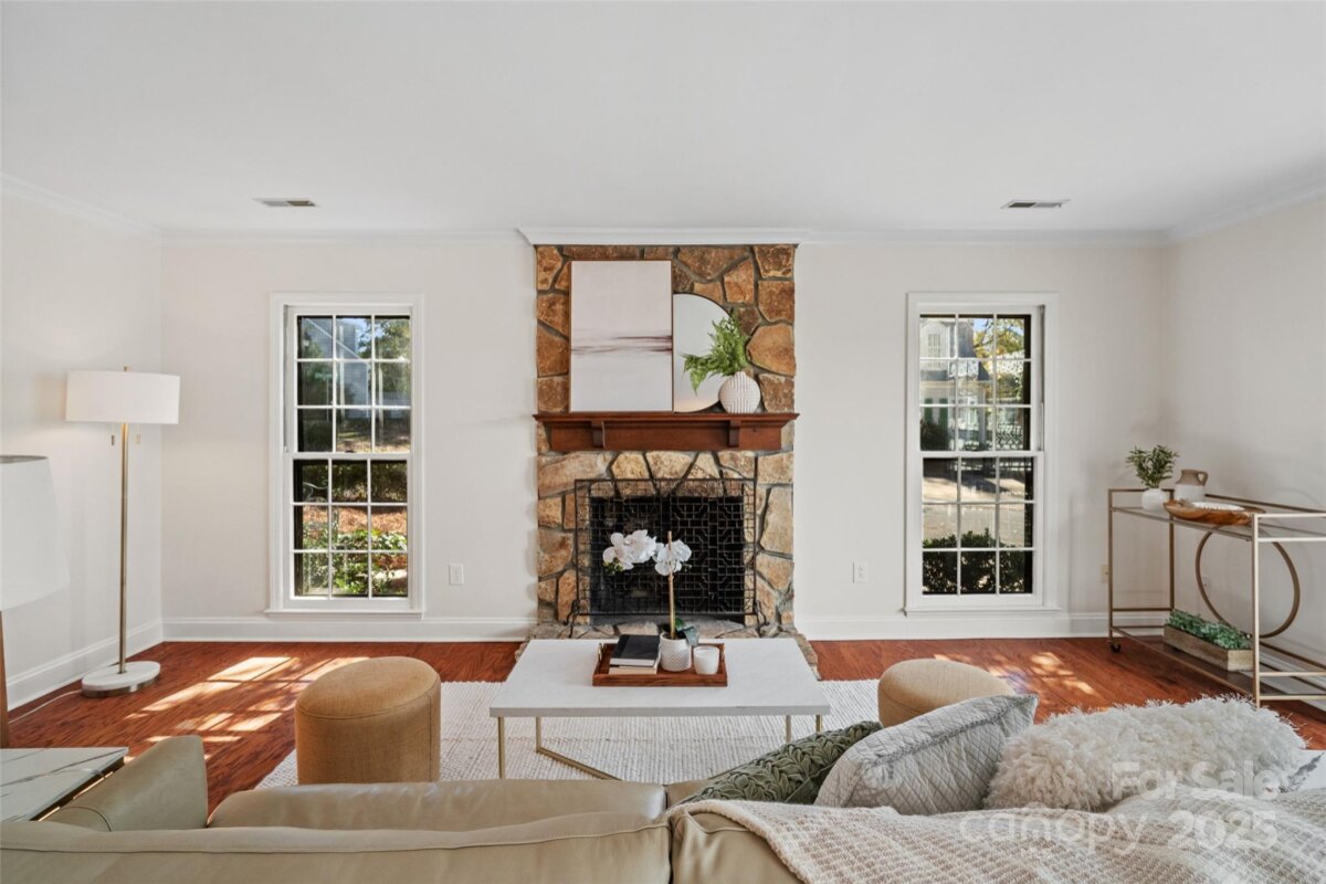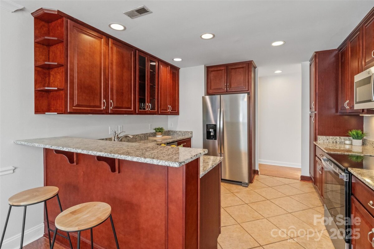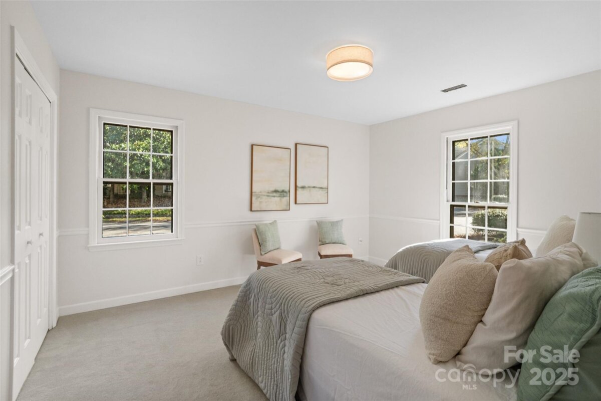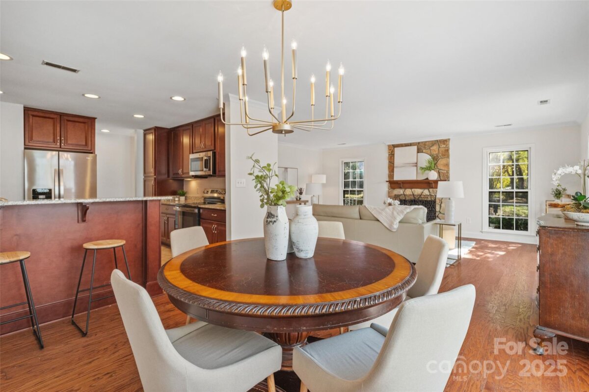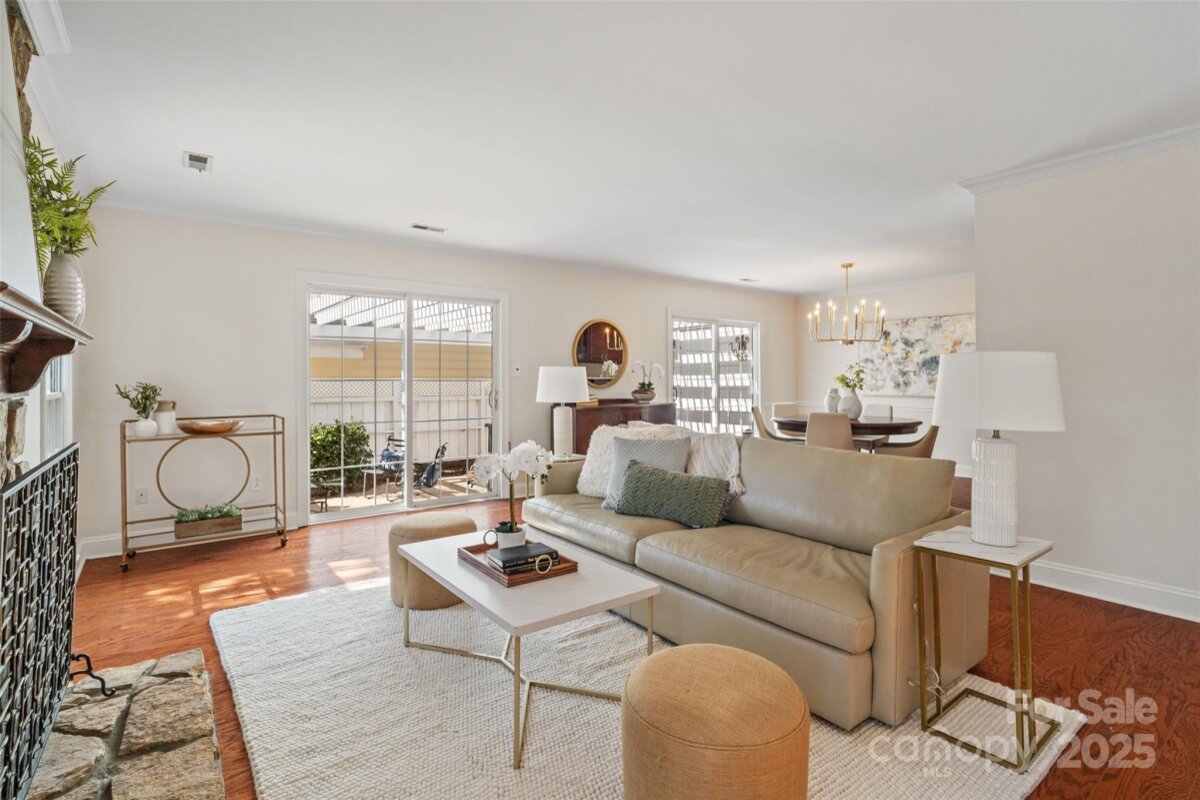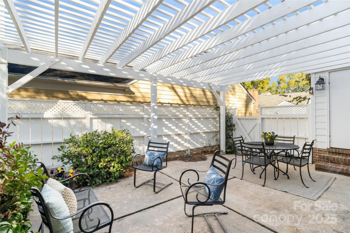 Welcome to this beautifully updated home in the sought after Candlewyck neighborhood. Located on a charming corner lot, this 3-bedroom, 2-bath patio home offers wonderful curb appeal, easy-care living and a prime location, convenient to the Arboretum, Ballantyne, SouthPark and I-485. Recent updates include new roof, new HVAC, updated baths, new carpet in bedrooms, updated lighting, new outlets and switches, and fresh interior paint throughout. The kitchen features ceiling-height cherry cabinetry, new stainless steel refrigerator, new stainless steel electric range and granite countertops with breakfast bar. The spacious living and dining areas flow seamlessly together, filled with natural light from the large windows and sliding glass doors that open to a private patio with a covered pergola, perfect for entertaining or relaxing outdoors. Both bathrooms have been tastefully updated. The primary bath includes all new tiled shower, dual sink vanity, tiled flooring, toilet and lighting. The secondary bath also has all new vanity, toilet and lighting. This move-in ready, single level home offers simplicity, convenience and modern comfort.