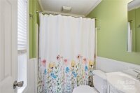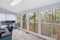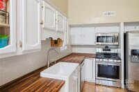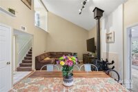 Location!! 2 Bedroom 1 1/2 bath cottage home with inviting open floor plan tucked in beautiful peaceful Tega Cay! This is a super adorable, homey and inviting retreat nestled among the trees. Recent upgrades include updated kitchen - farmhouse sink, faucet, subway tile back splash. gas stove with beautiful wood butcher block countertop and on the free-standing island with storage. Family room features wood burning stove with vaulted ceiling that is open to the kitchen. Updated lighting. 1 bedroom with a half bath is located on main floor along with a flex room off family room providing awesome peaceful views of birds and wildlife. Flex room has AC and heat. Enter the deck from the kitchen through a sliding door that provides ample natural light inside. Primary suite with double closets and full bathroom is on the second floor. Covered deck in back of house with extra storage in walk-in crawl space. Outside painted 2 years ago. HVAC 5 years old. No HOA. Tega Cay has lots to offer from 27 miles of walking trails, pickleball and tennis courts, a golf club, parks, marina w lake access and boat ramps. Community events and festivals, summer concerts and 4th of July parade. Great schools. Tega Cay, which means "Beautiful Peninsula"
