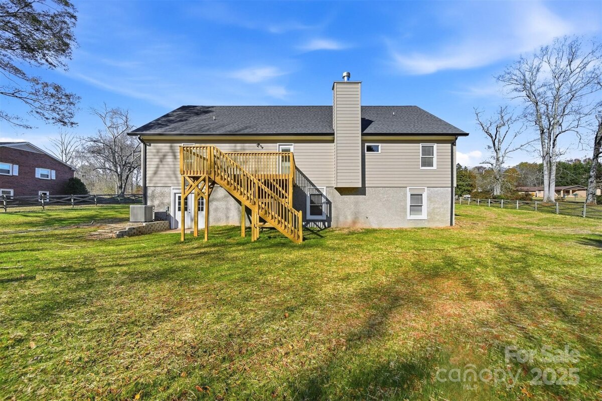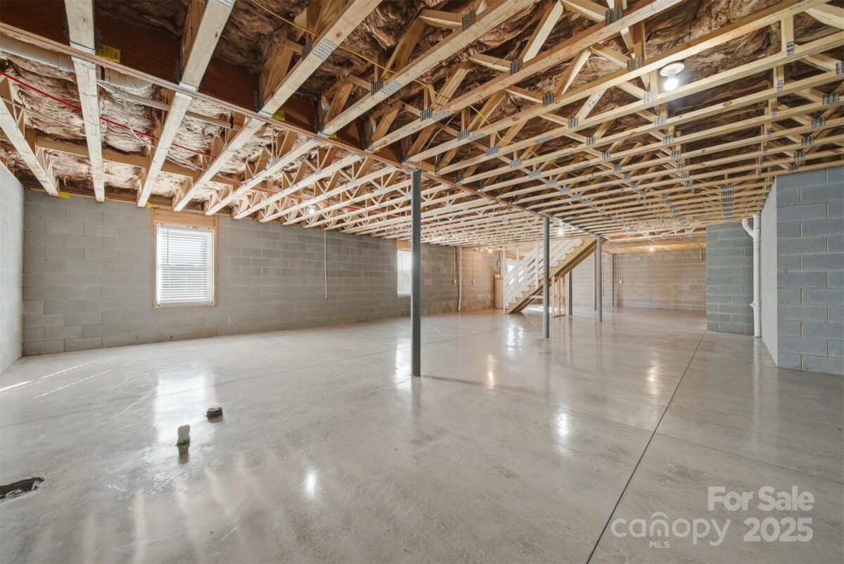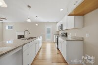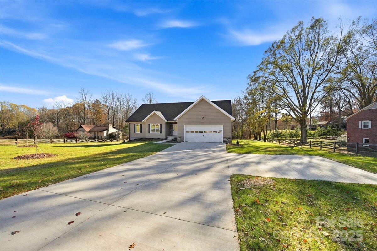 This home offers an exceptional open-concept design, perfect for both entertaining and comfortable living. The spacious living area flows seamlessly into a stunning kitchen, featuring beautiful Hickory hardwood floors and elegant granite countertops that are both visually appealing and highly functional. A warm and inviting atmosphere is created by the wood-burning fireplace in the living room, making it an ideal space for relaxation. From the kitchen, you can access the back deck, which includes stairs leading down to a large, level backyard, perfect for outdoor activities and gatherings. Adjacent to the kitchen, a convenient half bath features a unique octagon-stained window, adding a touch of character. The primary suite is a true retreat, boasting two generous walk-in closets. The en-suite bathroom is appointed with tile flooring, double vanities, and a tile tub/shower combination, providing a luxurious experience. Additionally, the home includes two other spacious bedrooms that share a well-appointed full bathroom. The full, unfinished basement offers significant potential for expansion, as it is already plumbed and ready to be customized to your needs, with both interior and exterior access. Outside, the spacious back deck provides an excellent space for relaxing or entertaining guests. Ideally located, this home offers easy access to HWY 321, I-40, and Downtown Hickory, as well as a variety of other amenities and attractions, ensuring convenience for all your daily needs.