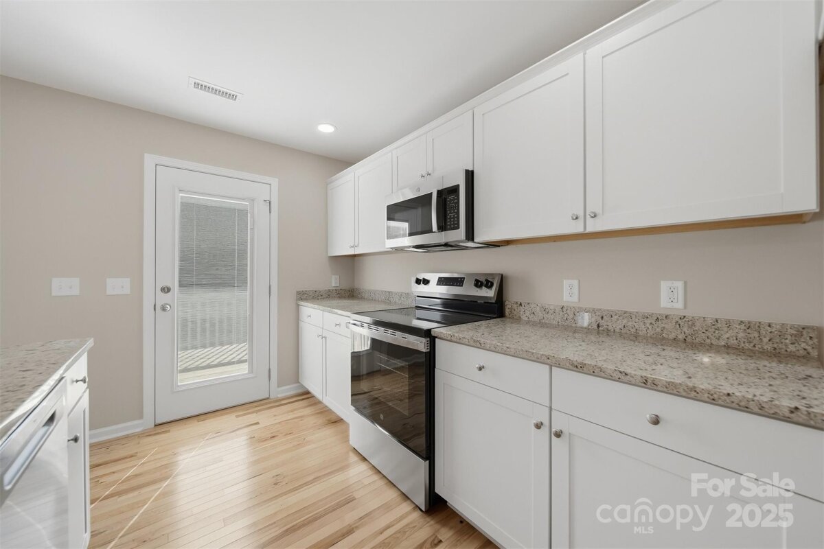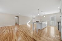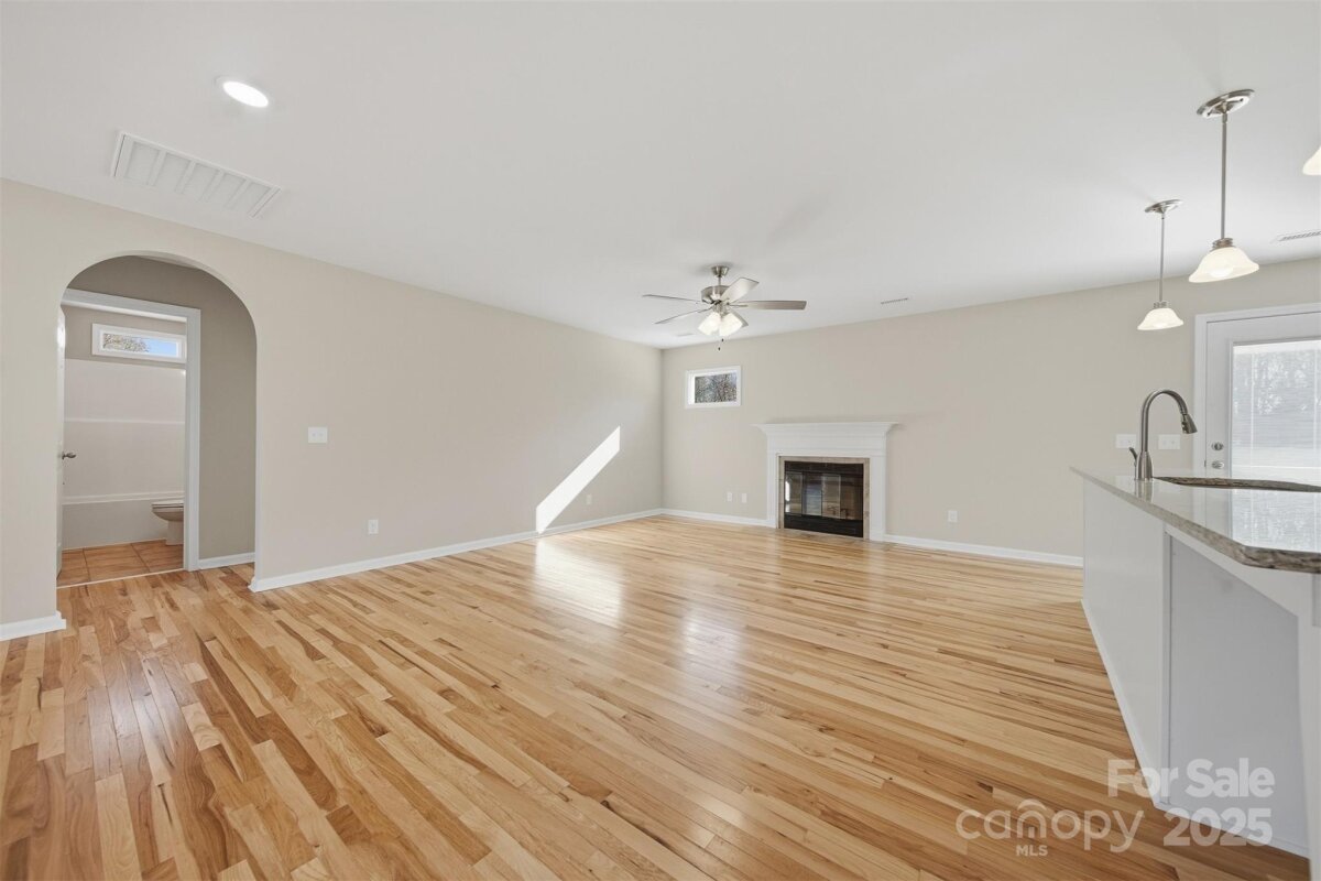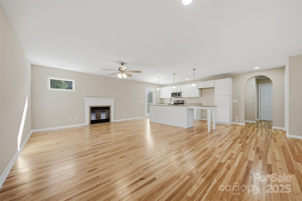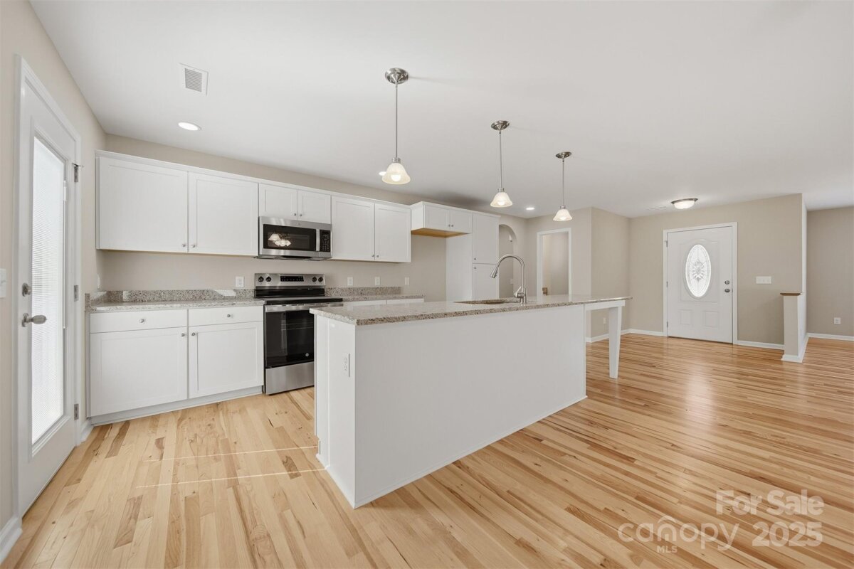 This home offers an exceptional open-concept design, perfect for both entertaining and comfortable living. The spacious living area flows seamlessly into a stunning kitchen, featuring beautiful Hickory hardwood floors and elegant granite countertops that are both visually appealing and highly functional. A warm and inviting atmosphere is created by the wood-burning fireplace in the living room, making it an ideal space for relaxation. From the kitchen, you can access the back deck, which includes stairs leading down to a large, level backyard, perfect for outdoor activities and gatherings. Adjacent to the kitchen, a convenient half bath features a unique octagon-stained window, adding a touch of character. The primary suite is a true retreat, boasting two generous walk-in closets. The en-suite bathroom is appointed with tile flooring, double vanities, and a tile tub/shower combination, providing a luxurious experience. Additionally, the home includes two other spacious bedrooms that share a well-appointed full bathroom. The full, unfinished basement offers significant potential for expansion, as it is already plumbed and ready to be customized to your needs, with both interior and exterior access. Outside, the spacious back deck provides an excellent space for relaxing or entertaining guests. Ideally located, this home offers easy access to HWY 321, I-40, and Downtown Hickory, as well as a variety of other amenities and attractions, ensuring convenience for all your daily needs.